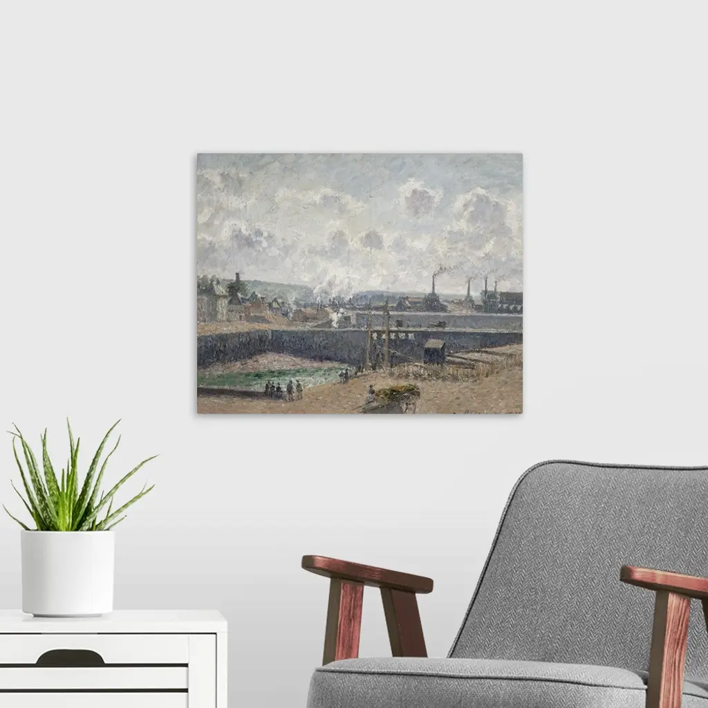 XIR37007 Low Tide at Duquesne Docks, Dieppe, 1902 (oil on canvas) by Pissarro, Camille (1831-1903); 54.5x65 cm; Musee d'Orsay, Paris, France; French, out of copyright