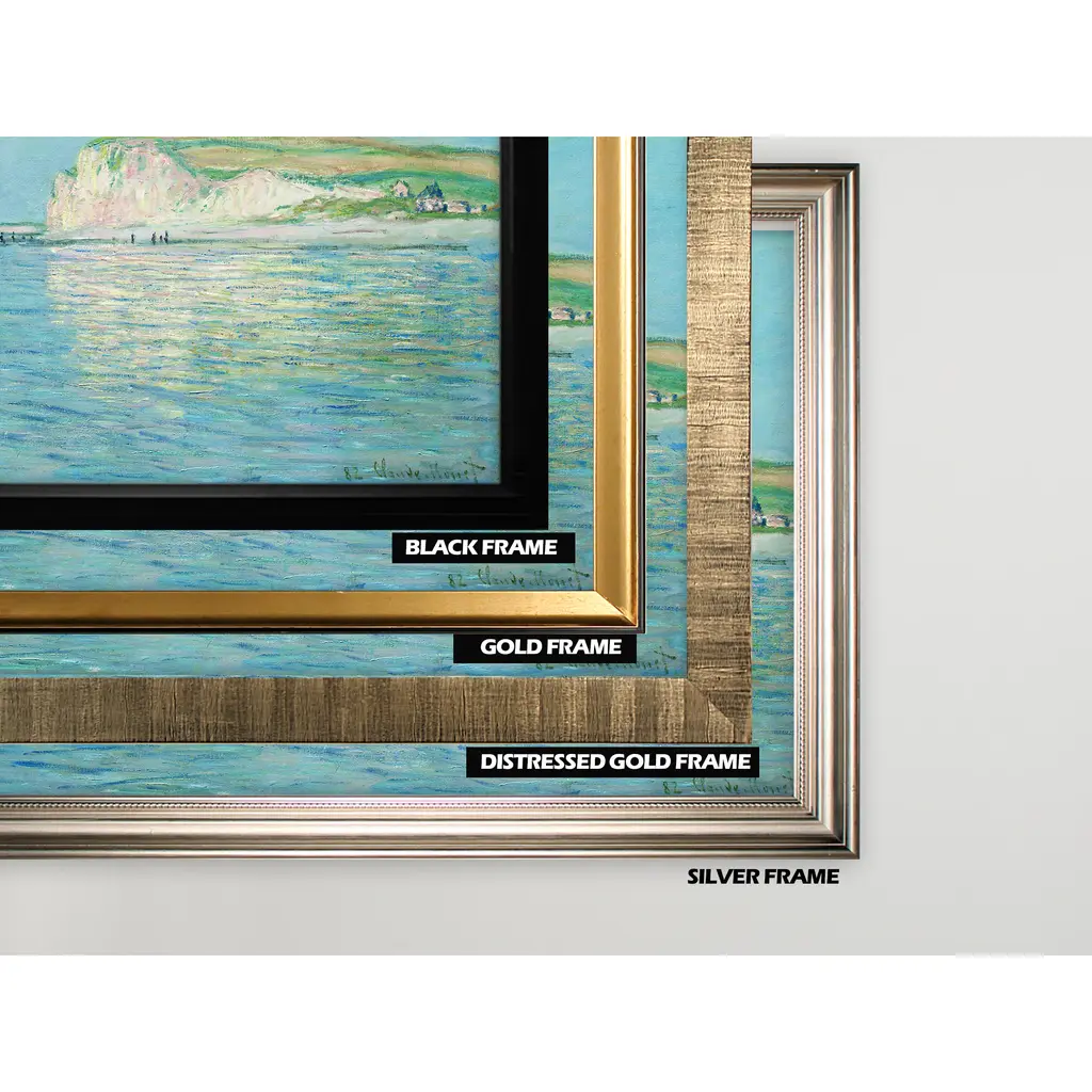 Low-Tide -Claude Monet - Framed Premium Gallery Wrapped Canvas Silver Frame A premium hand wrapped Giclee canvas. 100-percent and created to last . Each frame is custom cut and mounted by hand and applied around a custom printed 24x36" hand wrapped giclee printed canvas. OVERALL SIZE : With Silver Frame : 30"x 42" ** Overall size may vary slightly from piece to piece Each piece is made to order. 100-percent Built to Last Each piece comes ready to hang Shape: Rectangle Orientation: Horizontal Frame Material: Wood Subject: Sea & Shore, Nautical, Impressionism Style: Traditional Season or Holiday: All Seasons Size: Large Frame Color: Silver