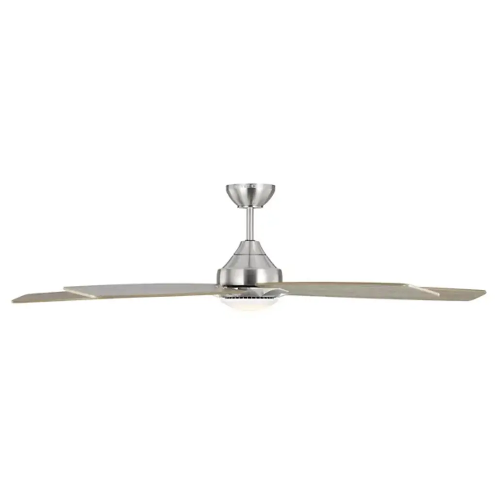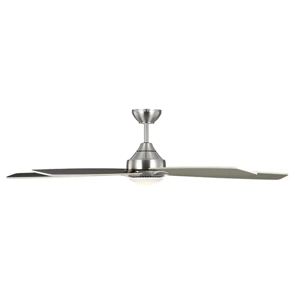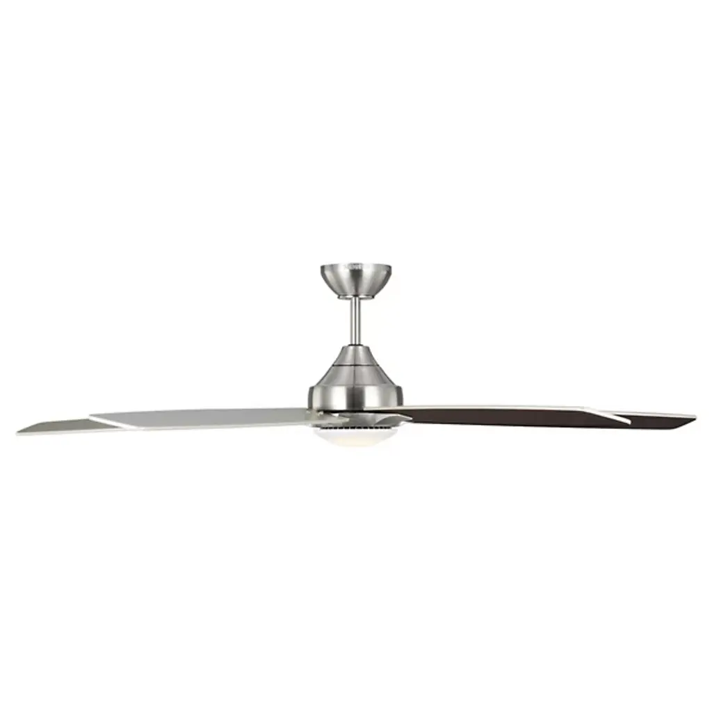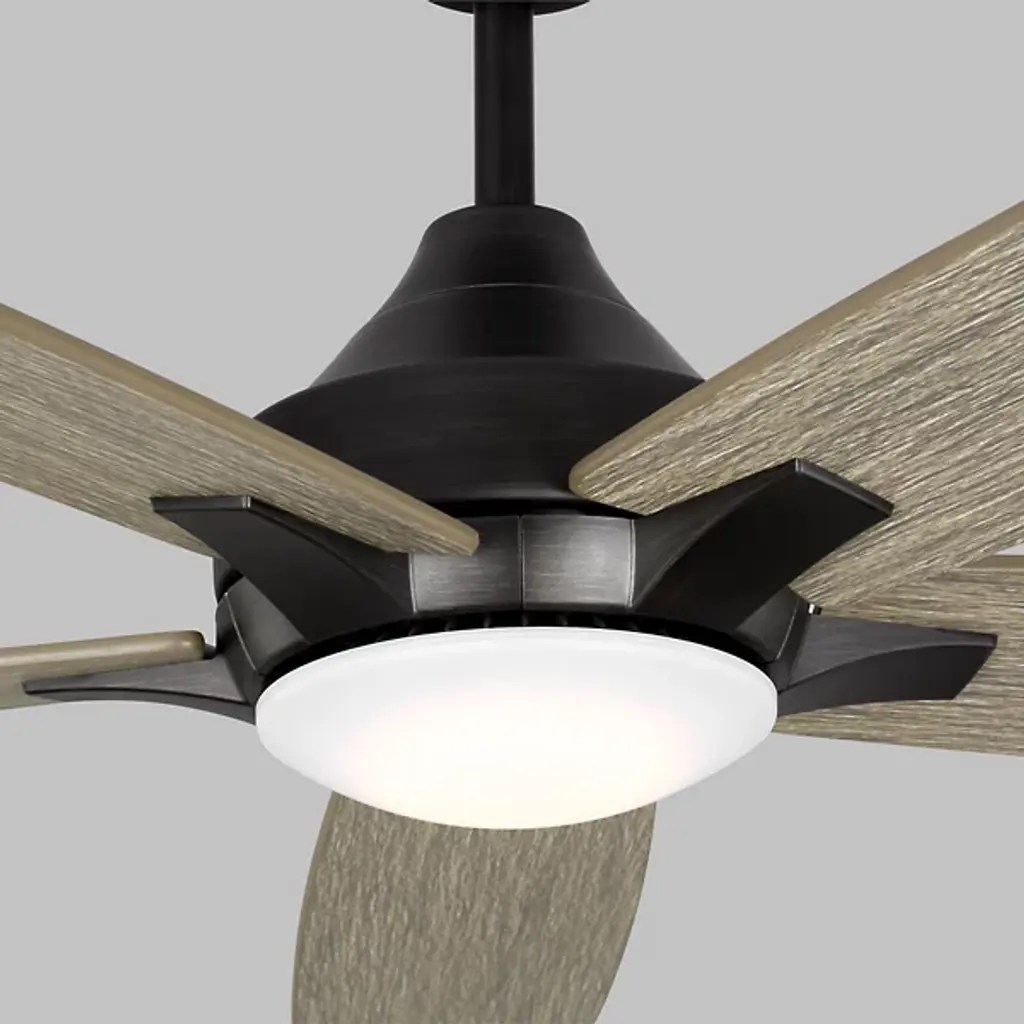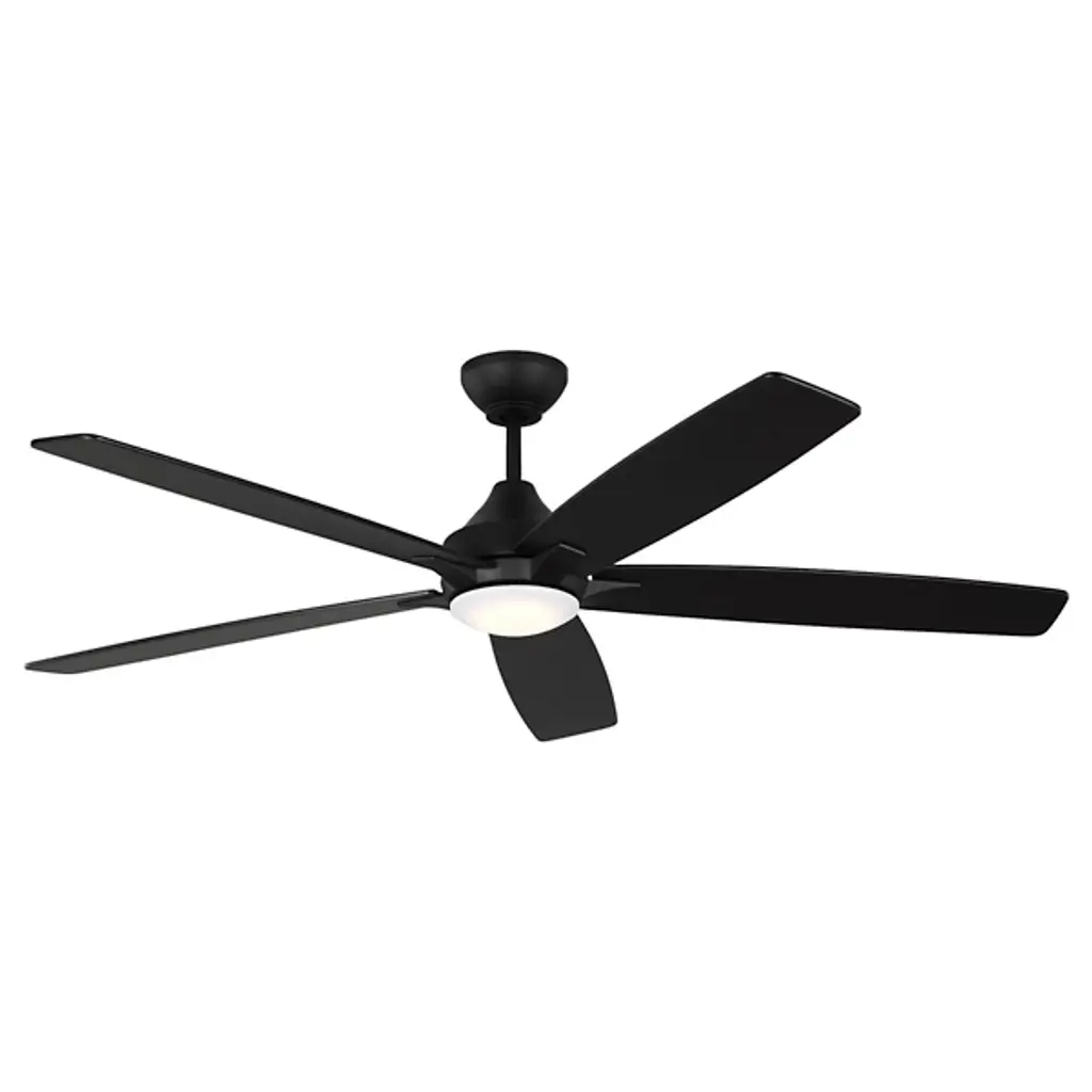 The Lowden 60" Indoor/Outdoor LED Ceiling Fan with Light Kit by Visual Comfort Fan, formerly known as Monte Carlo, has a minimal, clean design that is ideally proportioned to help create a comfortable environment in more spacious rooms. Set around a smooth, integrated light kit, a set of five blades expand outward, providing plenty of airflow thanks to six speeds and a reversible option that is easily operated with an included remote. A quiet DC motor powers this fan, and the wobble-free, precision balanced blades move smoothly to lend a functional, handsome touch to spaces.