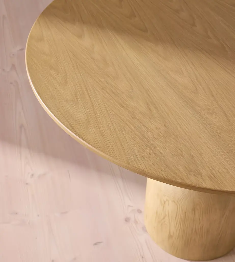 A sculptural pedestal-style silhouette is crafted from an open-grain oak with a pale finish. Drawing on the natural wooden details of Soho Beach House Canouan, the four-seater Lowden table is crafted in open-grain oak with a pale finish. The simple yet sculptural form creates a focal point for the dining room, as well as a conversational piece when entertaining.
