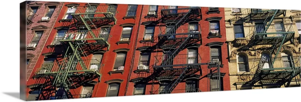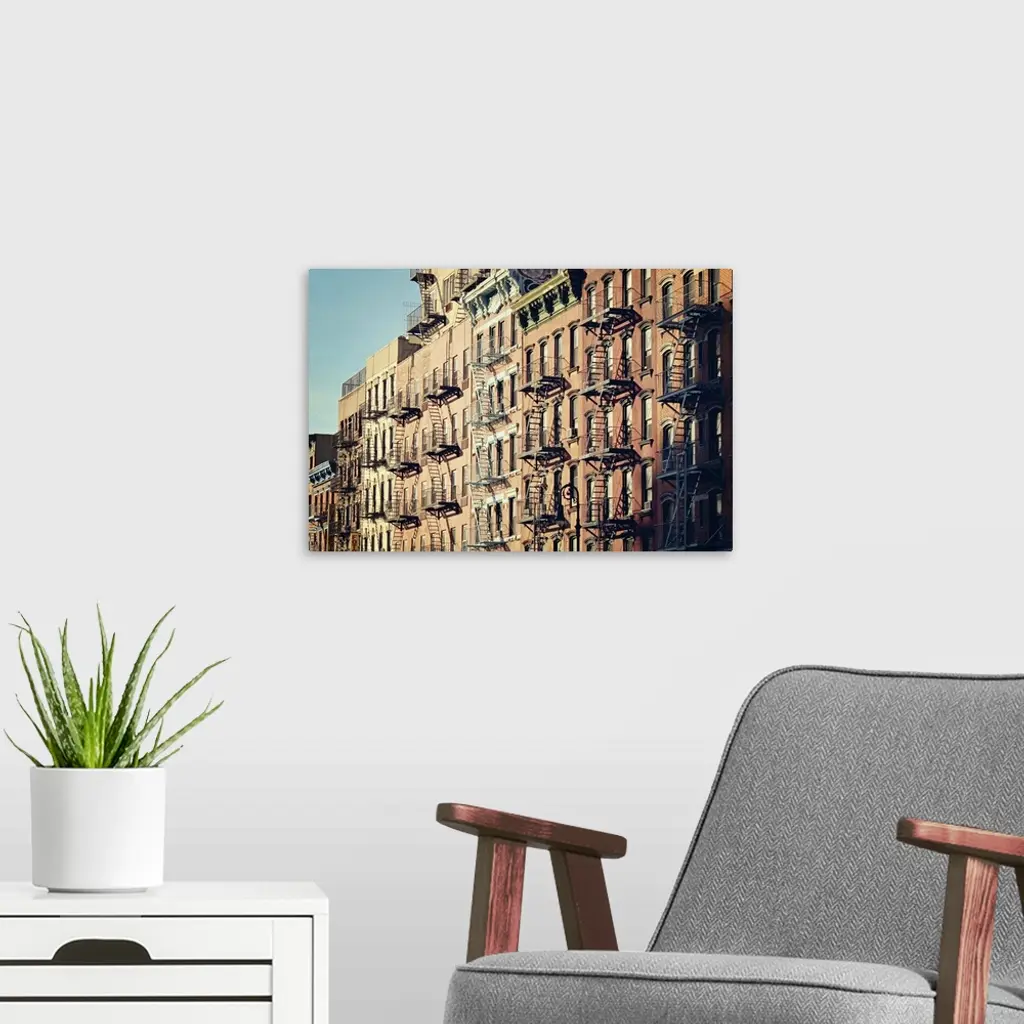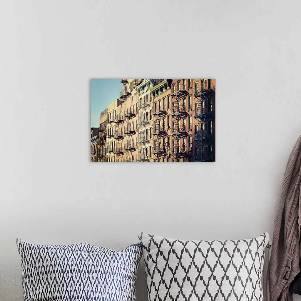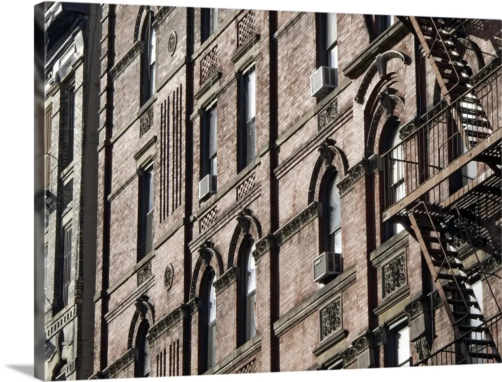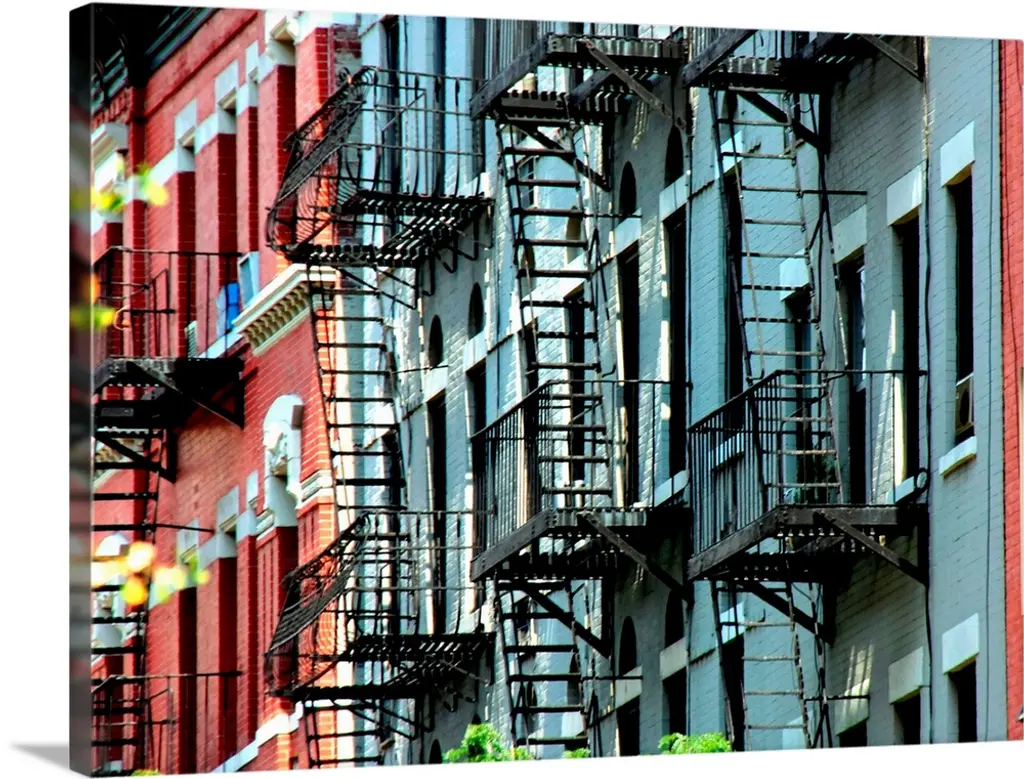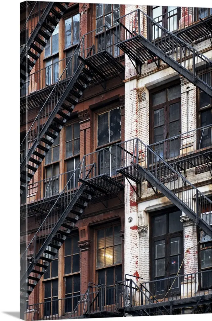 Lower east side cityscape of building fire escape stairs and windows, New York. wall art for home and office decor. Discover canvas art prints, photos, mural, big canvas art and framed wall art in GreatBigCanvas.com's varied collections.