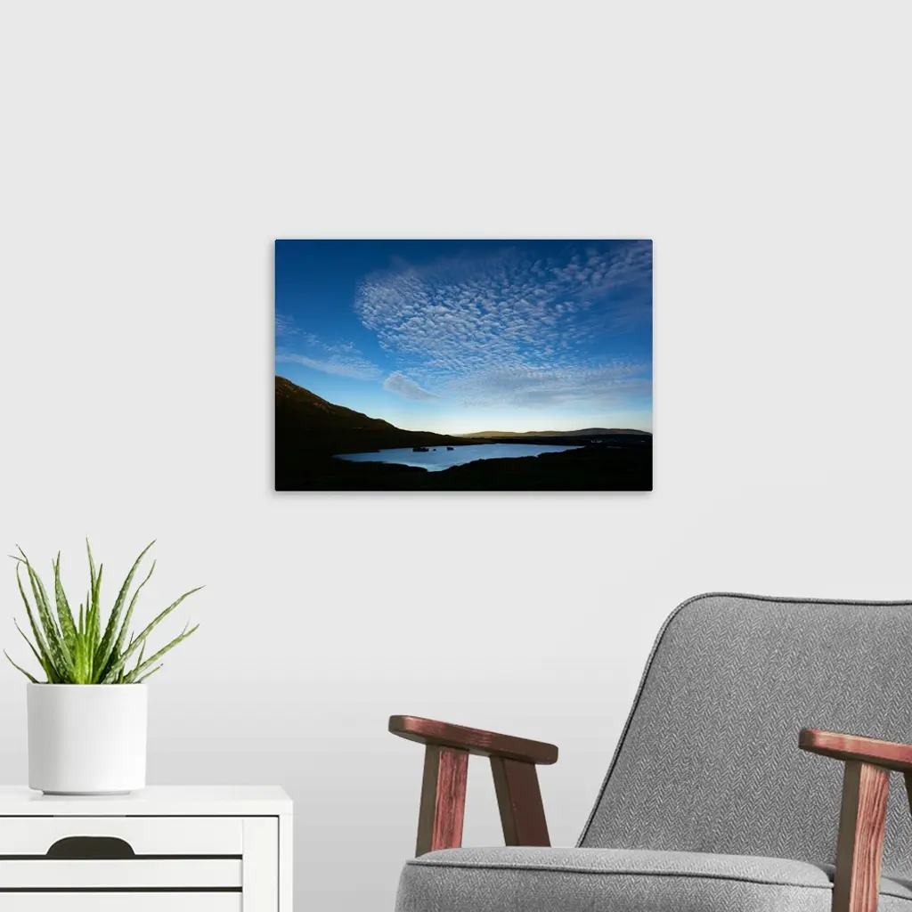 Cloudy blue sky over a lake in Ireland