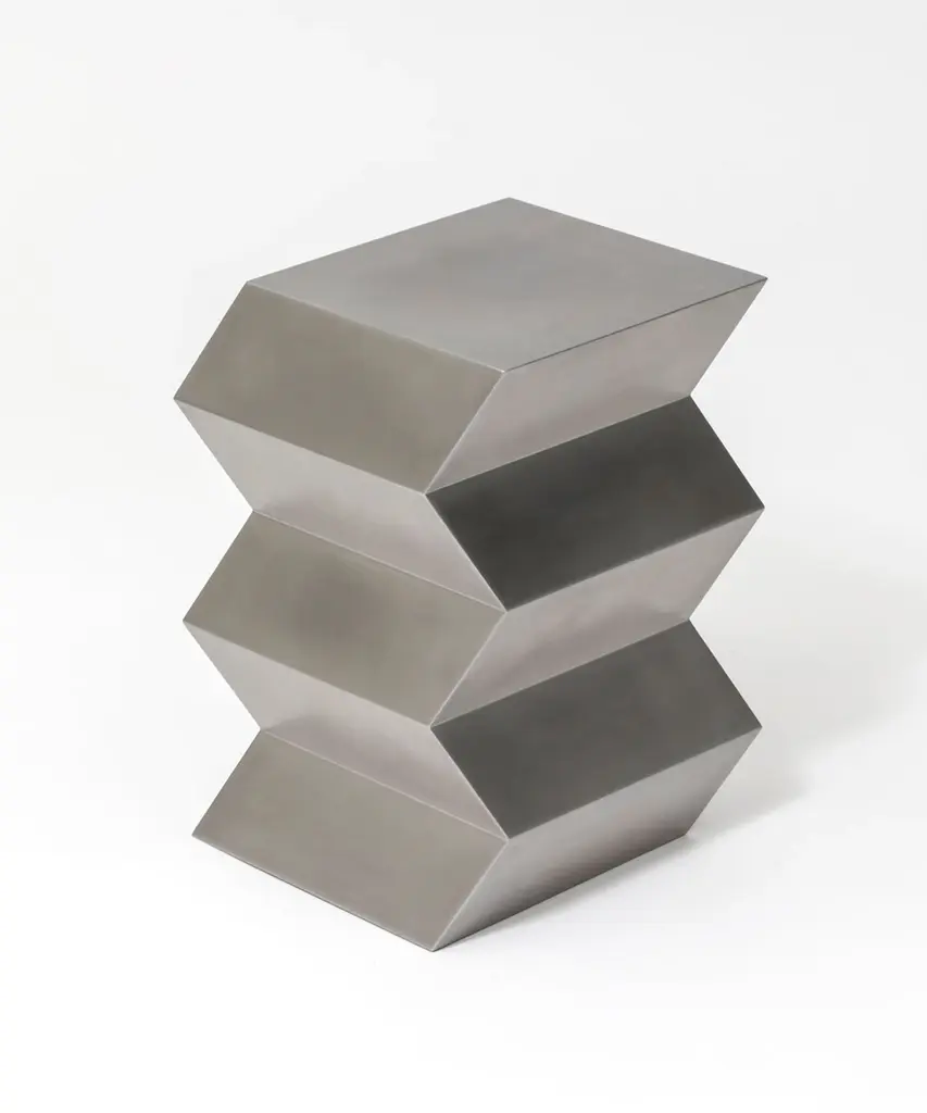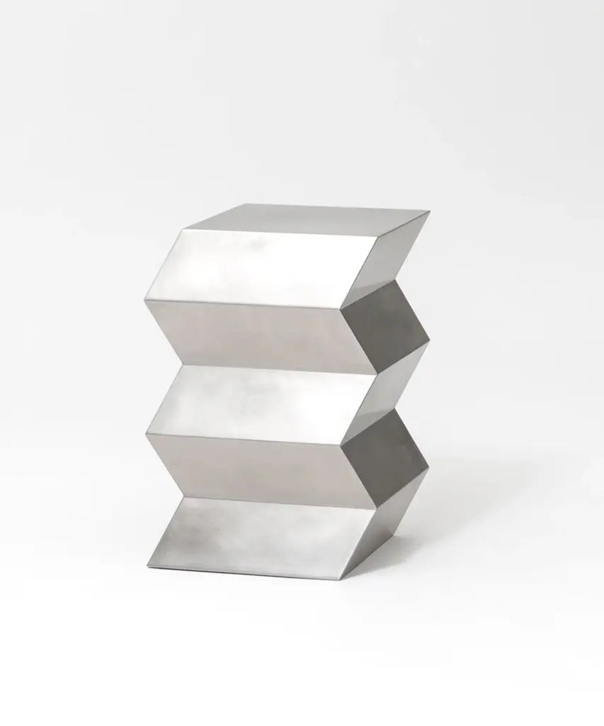 The layered series is the work of stacking materials to make them a basic unit and developing various forms and functions by combining them. Layered steel is as part of the Layered series, the stainless steel surface is 100% hand-sanded and wax finished to add depth and emphasize formability.The Layered Series is the main concept of Hwang's work. He focuses on experimentation layering materials we can easily find around us to form architectural compositions. This series starts from his childhood memory of an incessantly transforming city full of geometric architecture. Designed by Hyungshin Hwang in Seoul, South Korea.