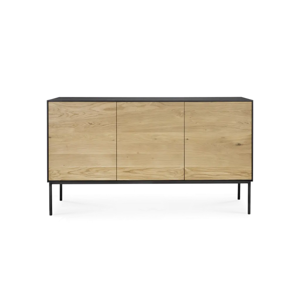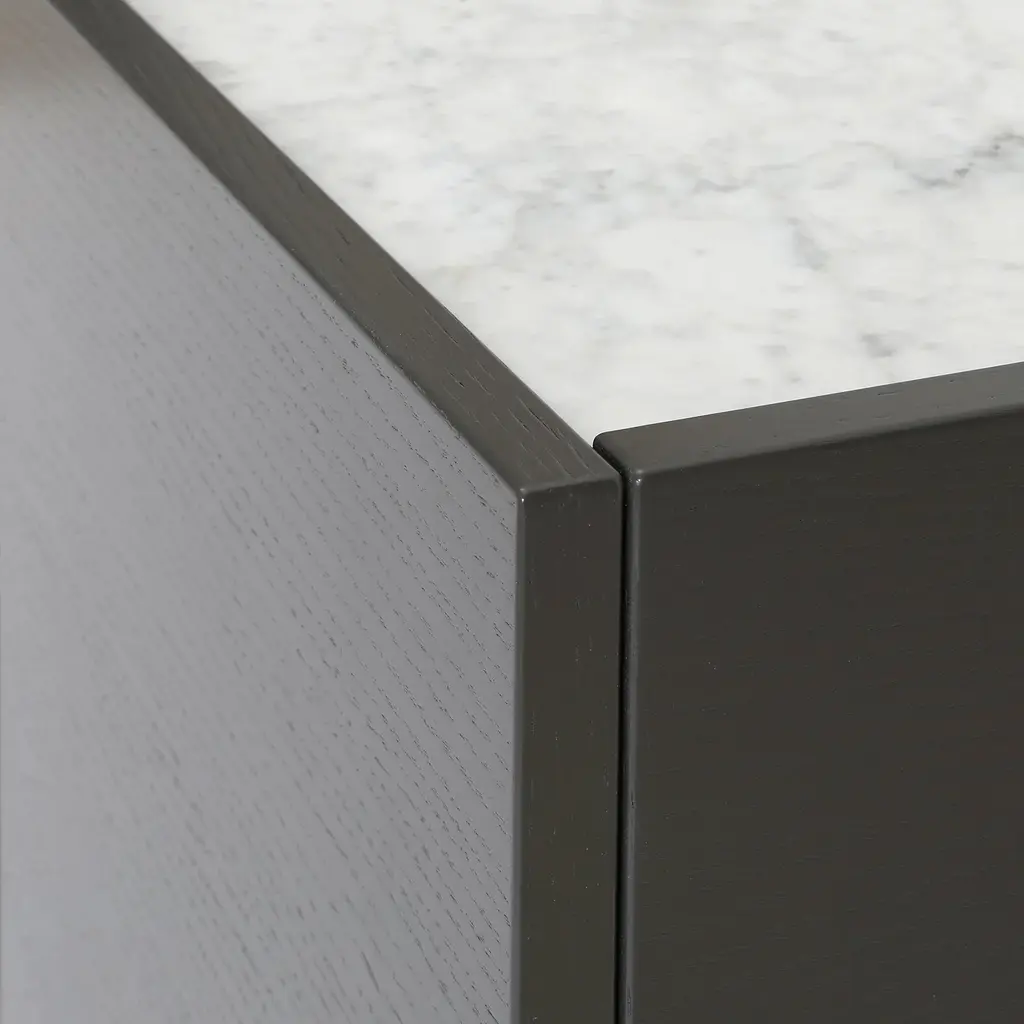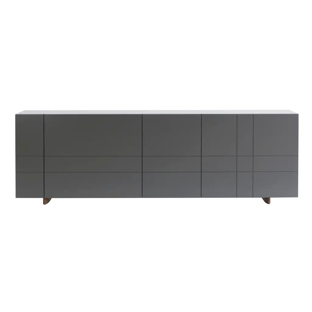 Designers Broberg & Ridderstråle bring a keen balance to the mix of elements in their Luc Deluxe 160. The impressively scaled 4-door sideboard features a lacquered oak cabinet in a range of subtle hues, set on a woodgrain stand in one of a number of stained oak finishes. For a final flourish, the top surface can then be selected in either solid stone—Belgian limestone, Carrara marble or Nuvolato Marble—or transparent float glass.