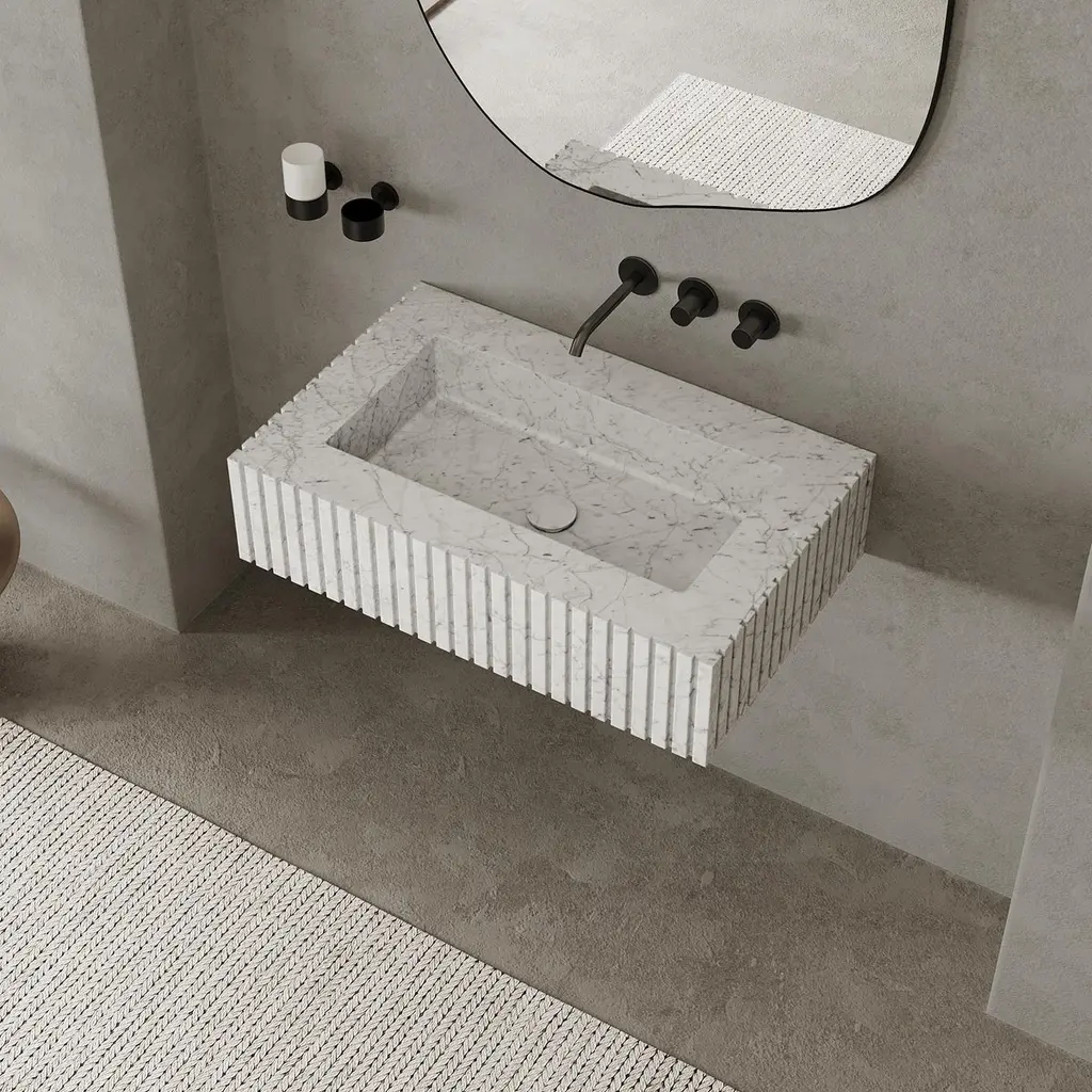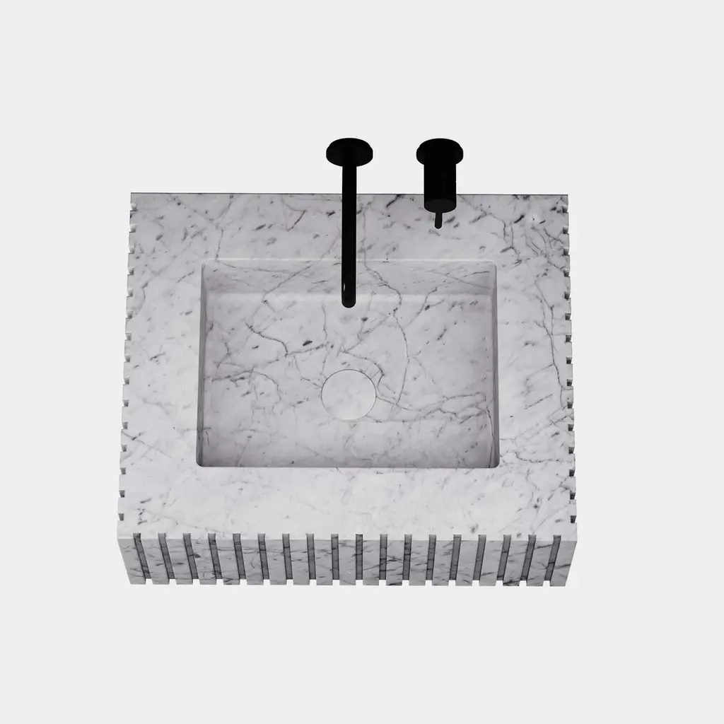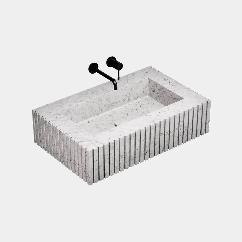 Luca - Ribbed Marble Basin - White Carrara - Small