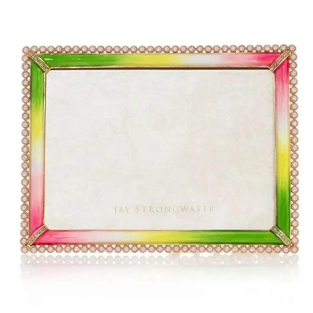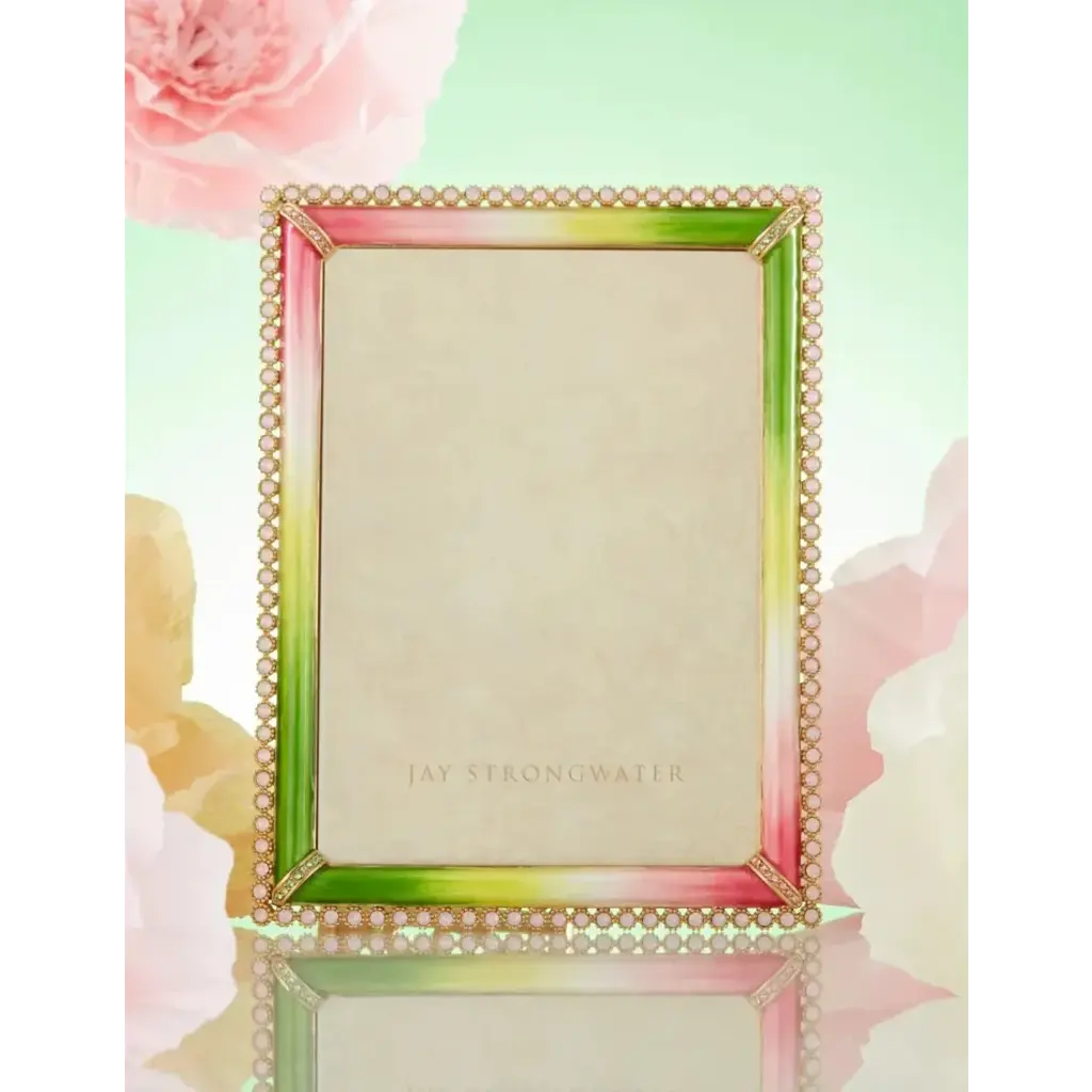 Our Lucas Stone Edge 5" x 7" Frame from our Classics Collection gets a vibrant springtime make over - with green and pink ombré enamel and hand-set Swarovski crystals to border your loved ones.
