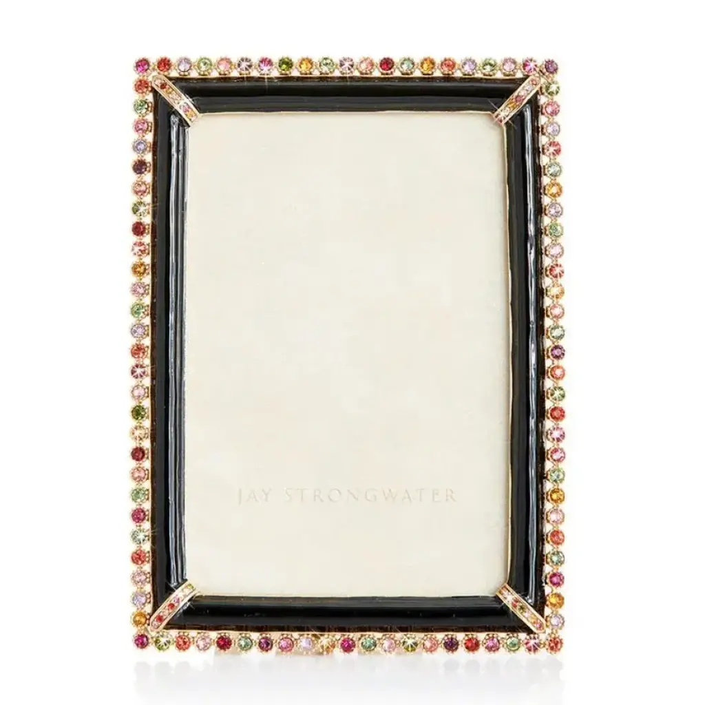 Hand-enameled in bold fuchsia, orange and gleaming 14K gold, this piece is the ideal statement-maker for any room. Rimmed by 144 twinkling crystals, this hand-painted frame was created with your precious memories in mind.