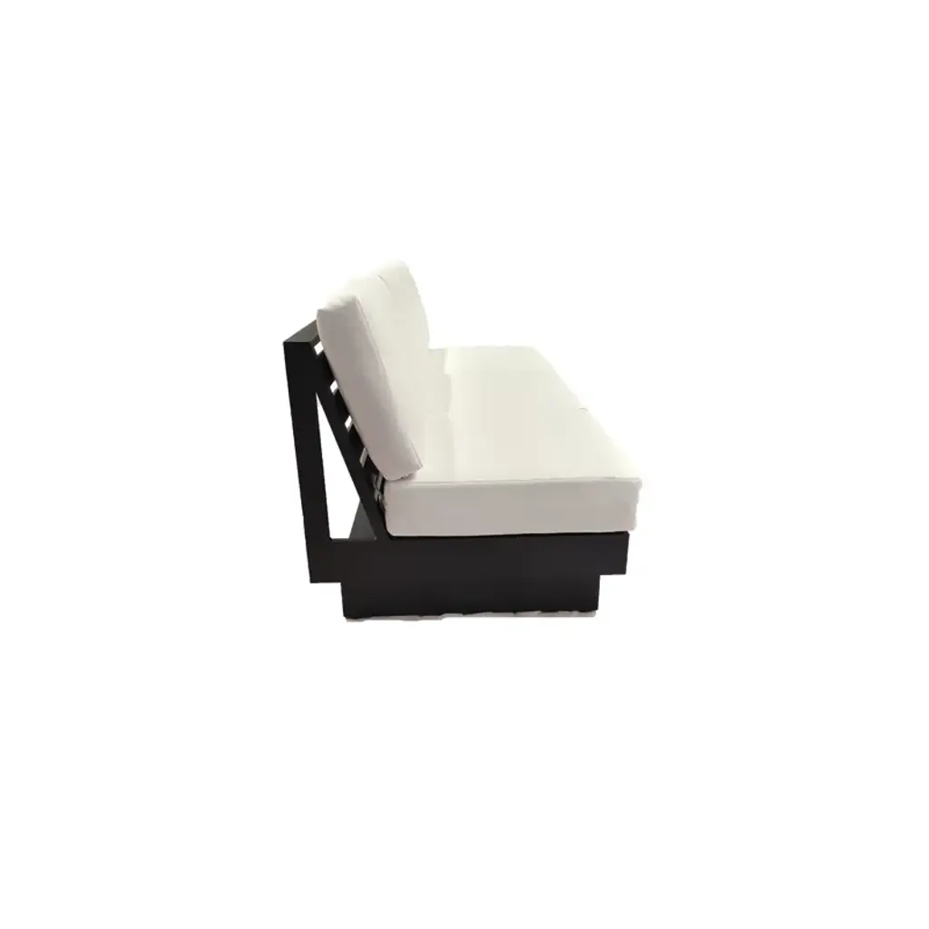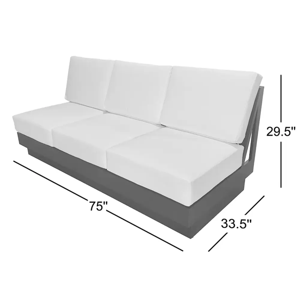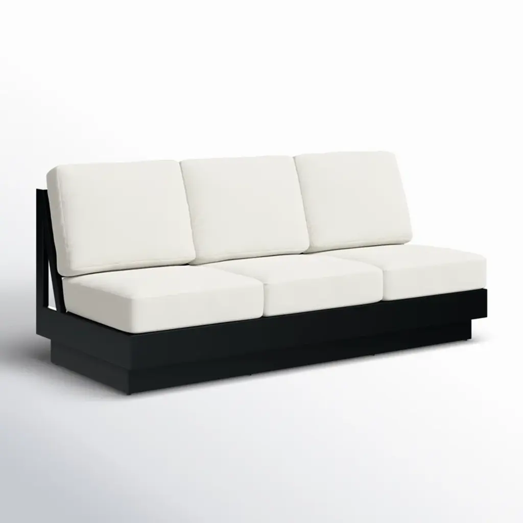 Enhance your outdoor living experience with our patio sofa. Engineered for lasting durability, the aluminum frames of this patio sofa are rust-free, ensuring performance and protection against the elements. The clean metal look introduces a touch of elegance to your outdoor space, while also providing exceptional durability. The patio sofa comes with Sunbrella performance cushions while offering a cozy seating experience. The black finish imparts a sleek and modern touch to the overall design. Best of all, the sofa comes fully assembled to enjoy immediately.