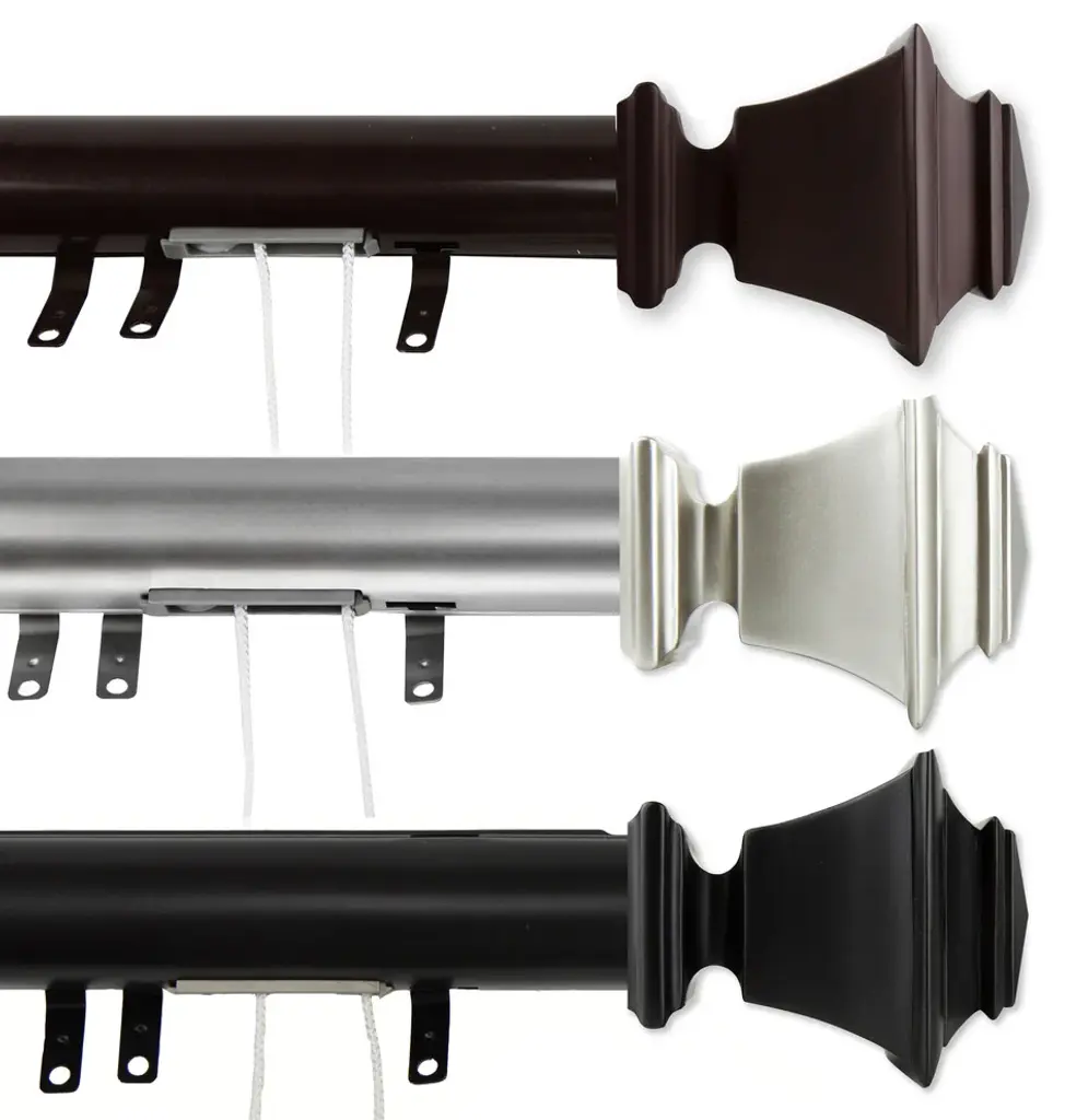Includes: Decorative Traverse rod, mounting brackets, and finialsProjection: 3.25"Finials measure: 4.25" x 3.25" x 3.125"