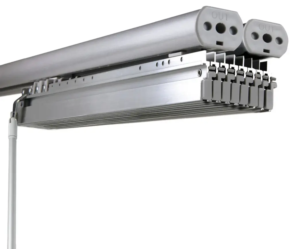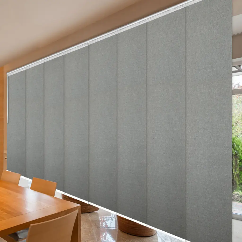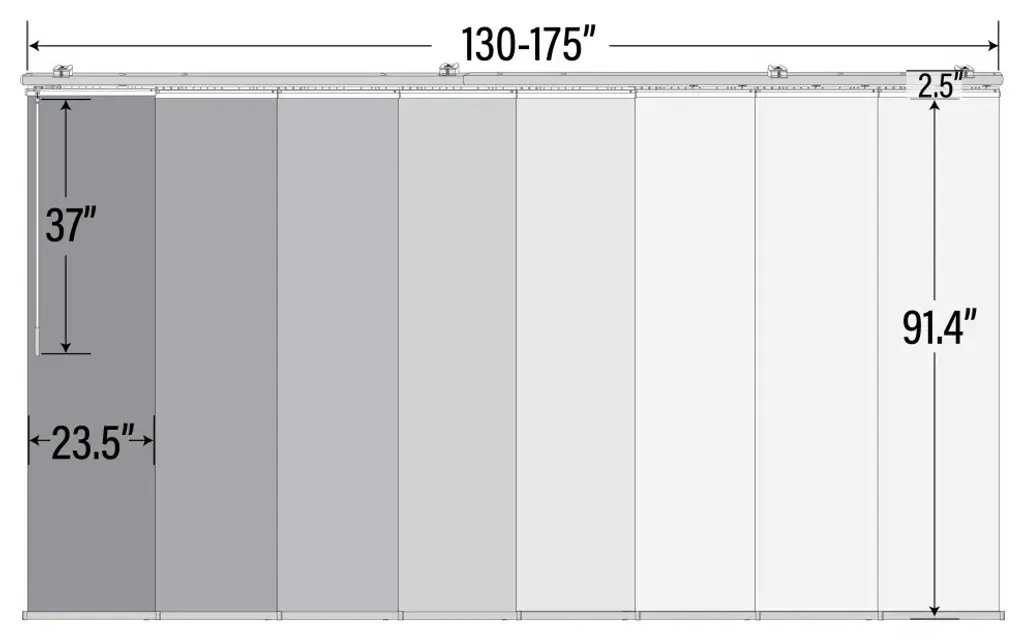 Central Design Products is pleased to introduce a new innovative panel track that offers easy 2-way installation, adding an alluring style and refined touch to your home decor. The double rail design of the track is sleek, compact, and reduces the overall footprint and weight of the installation, eliminating bulky, intrusive window treatments. Adjusting the panel height is a breeze � simply trim the panel, re-attach the liner, and install the panel weight. Detailed instructions are included.The panel track also features a patented slider design, made with aluminum and fitted with bearings that allow for durable and smooth operation. The sliders are stacked closer together than conventional panel tracks, reducing light bleed coming from the gaps between panels. This track has endless uses from dividing rooms, garages, offices, and closets to decorating windows and patios. Available in smaller sizes including 3, 4, 5, 6, and 7 panels. Extends from 130-175� wide. Each panel measures 23.5" wide and 91.5" tall, with a total installation height of 94" (includes the 2.5" rail track). The track can be wall or ceiling mounted. The panels can stack on the left or the right. The clearance from the wall is extendable from 1.25� to 3.25� and projection from the wall is extendable from 3� to 4.25�. Lucienne panel is made from 100% Polyester, with a light filtering shade that blocks 70% of the light.