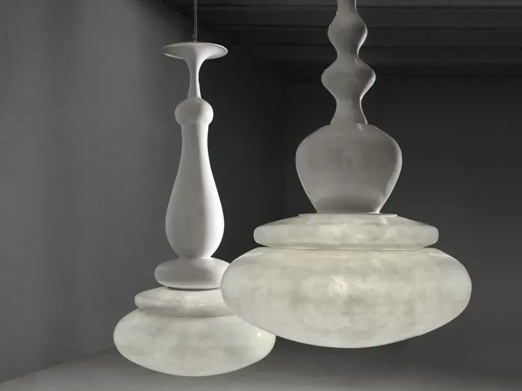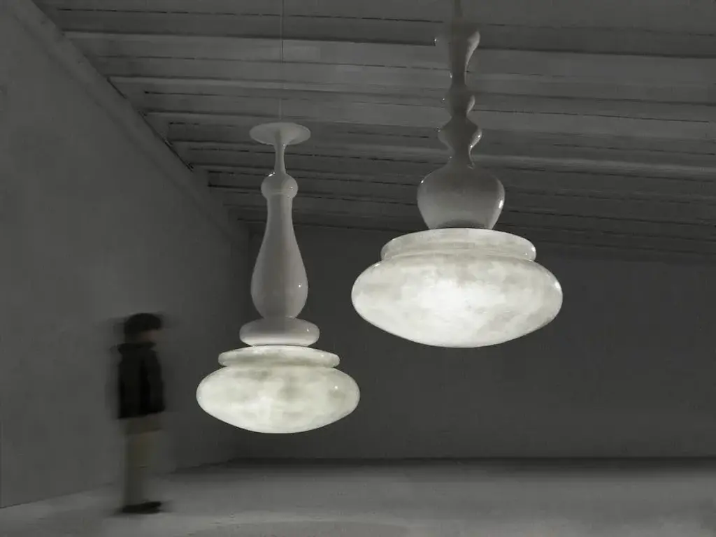 Lucilla lamp by Imperfettolab 2010 Dimensions : Ø 100 x D 195 cm Materials : Fibreglass Modular lamp system. Up to 250V (Europe/UK Standard).