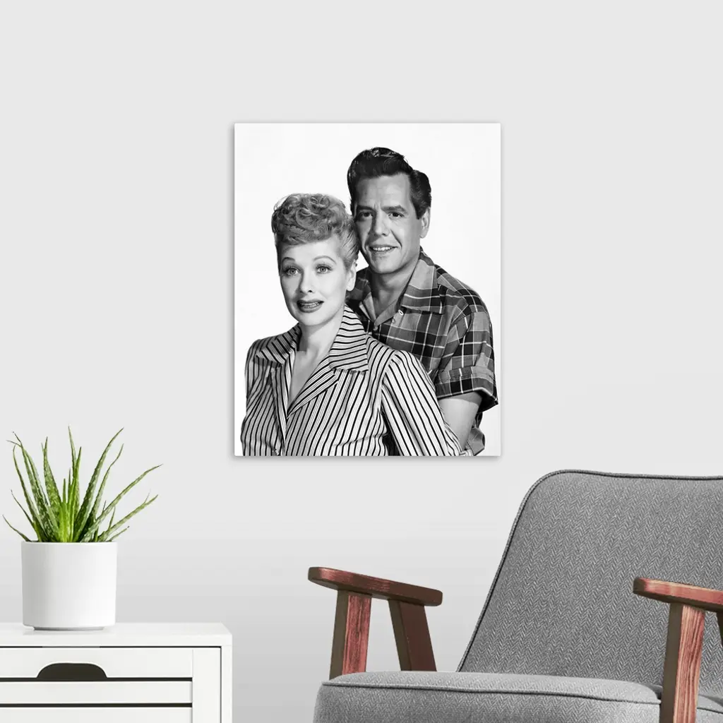American actress and comedienne. With husband Desi Arnaz (1917-1986) in a publicity photograph for the television series 'I Love Lucy,' around the time of the show's premiere in 1951.