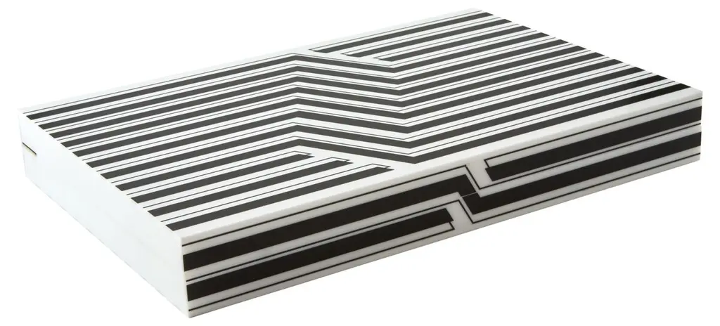 Add panache to game night with this black-and-white acrylic backgammon set. The case opens to reveal a board as well as the requisite checkers, dice, and dice shakers.