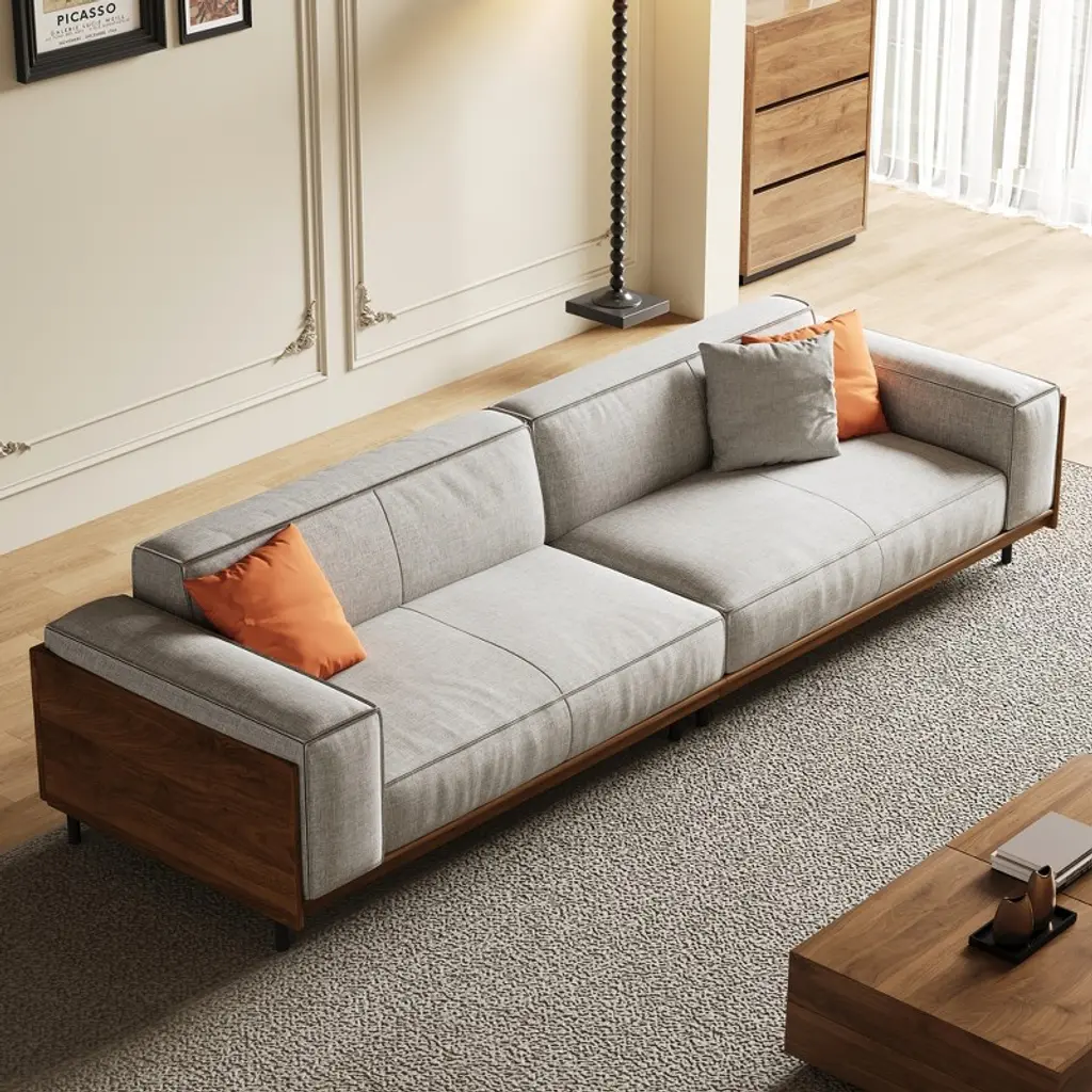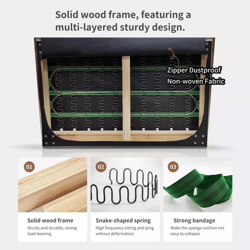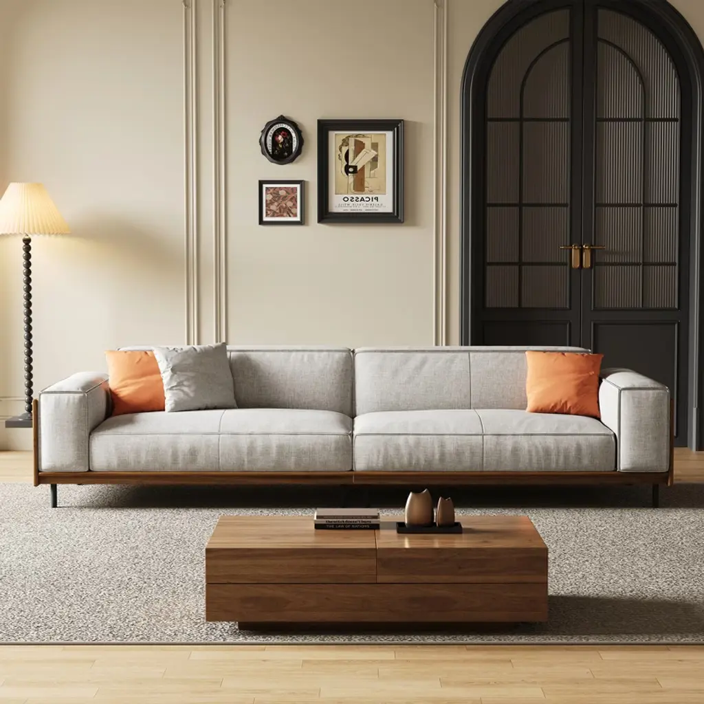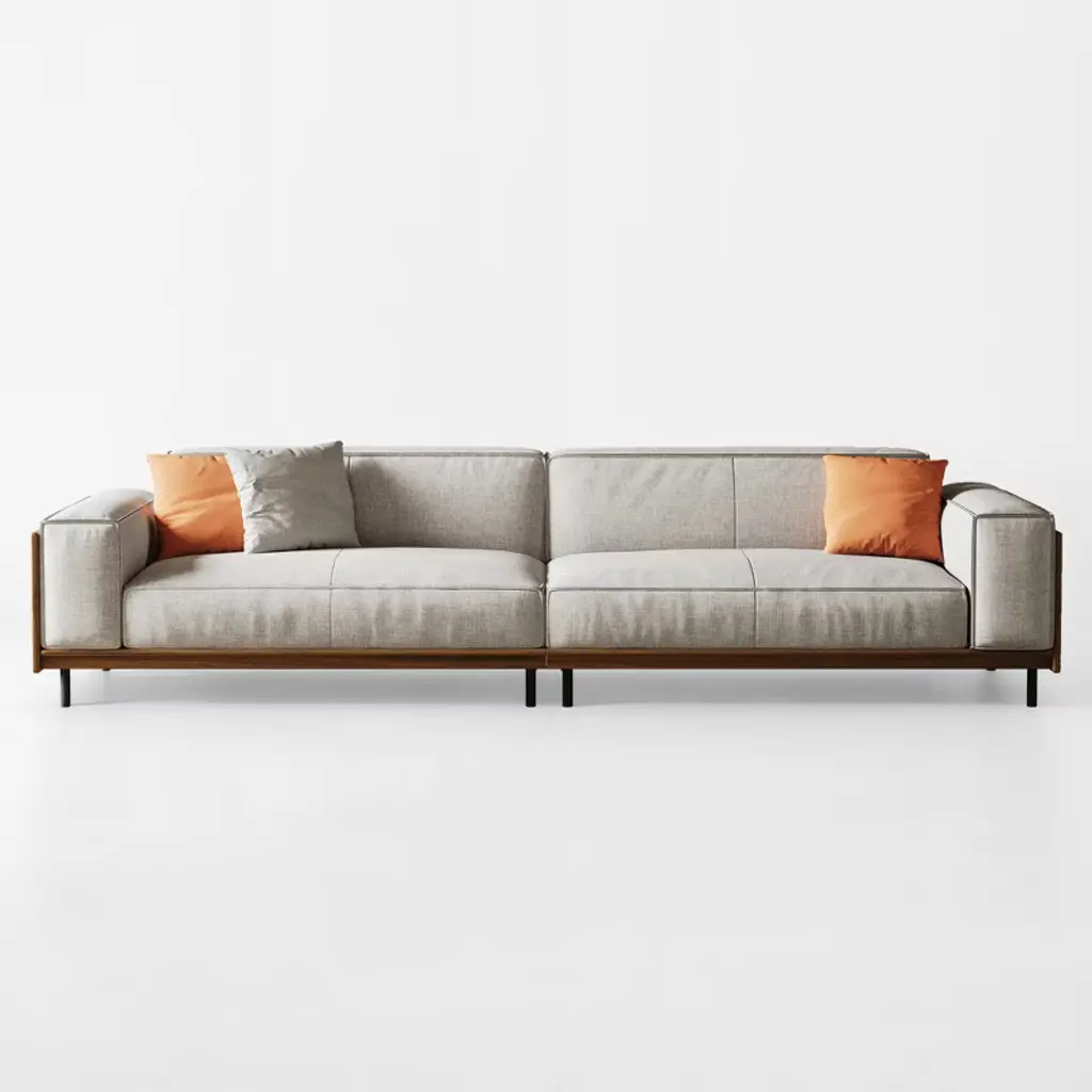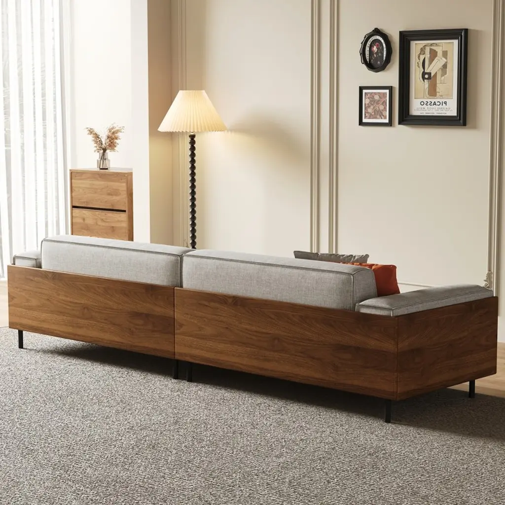 This set of outdoor sofas combines quality and comfort. The cotton and sofa linen fabric is breathable and refreshing, sofa exuding a rustic charm and easily adapting to various outdoor scenes. The spring seat cushions are highly elastic and provide strong support. The cushions of the backrests and armrests filled with soft sponges are fluffy and elastic,Sofa bringing a pleasant leaning experience. The solid wood frame is sturdy and durable, sofa and its natural texture complements the cotton and sofa linen fabric. The sofa overall style is harmonious and unified, being both practical and aesthetically pleasing, adding a warm and unique scenery to the outdoor space. Features Covered with breathable cotton-linen fabric, stays cool during long use High-density sponge-filled backrest cushion brings ultimate comfort Solid wood frame structure ensures strong load - bearing capacity High-density spring - supported seat cushions: sit for long without fatigue Appropriate sitting height, thicker cushion, for comfortable sitting experience Sturdy metal legs for higher load bearing capacity, foot pads for floor protection It can be placed in the living room, outdoors, the bedroom and the study Illustrated tutorials included, assemble furniture effortlessly Specifications: Color: Gray+Wood grain color Material: Cotton linen fabric, Pine wood, Plywood, Sponge, Spring, Metal Overall dimension: 111.81'' x 36.61'' x 31.49'' (L x W x H) Backrest dimension: 92.9'' x 15.74'' (W x H) Seat dimension: 92.9'' x 27.55'' (W x D) Seat height from the ground: 16.53'' Armrest height: 25.98'' Weight capacity: 900 lbs Net weight: 253.5 lbs Package includes: 1 X Sofa 1 x User's Manual