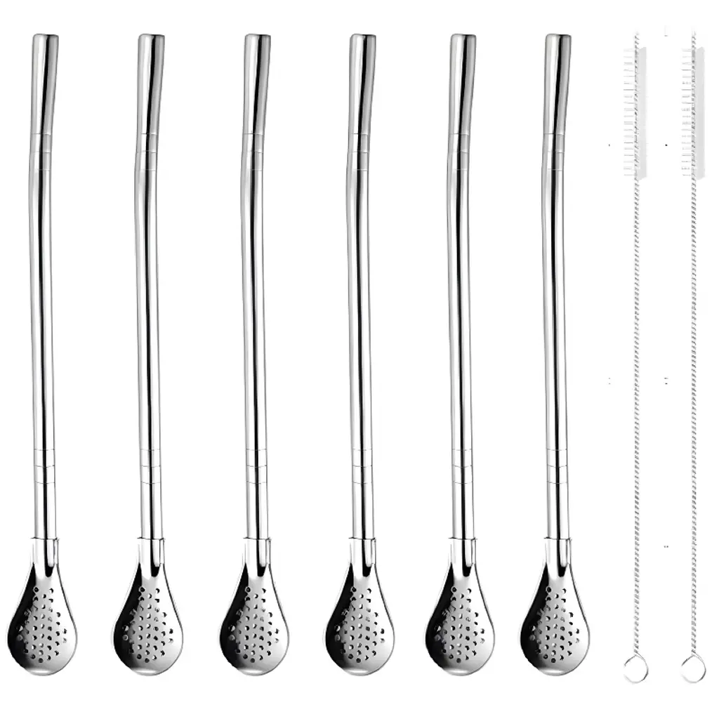 LUFTTÄT 5-pc drink strw/spoon set w clng br - stainless steel. These straws made of stainless steel are a great alternative to plastic straws since you can easily clean and use them over and over again. Suitable for iced tea, smoothies, cocktails – and everything in between.