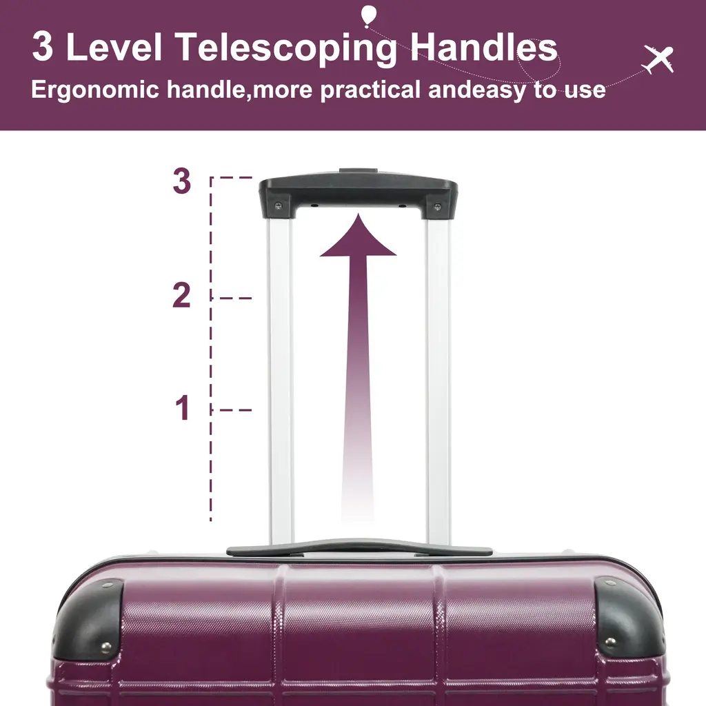 Luggage Set 4 Piece, Abs+pc Hardshell Lightweight Durable Suitcase With Tsa Lock And Spinner Wheels, For Men Women Travel - Purple