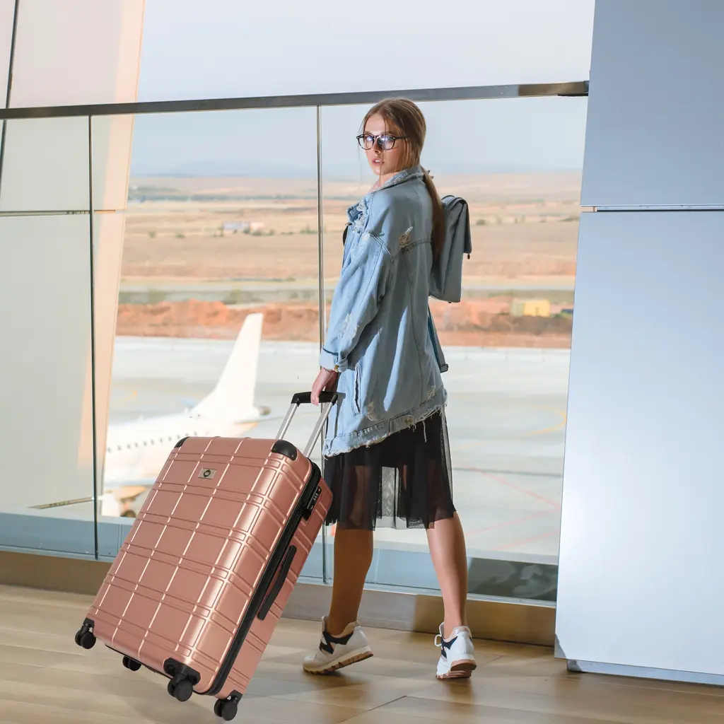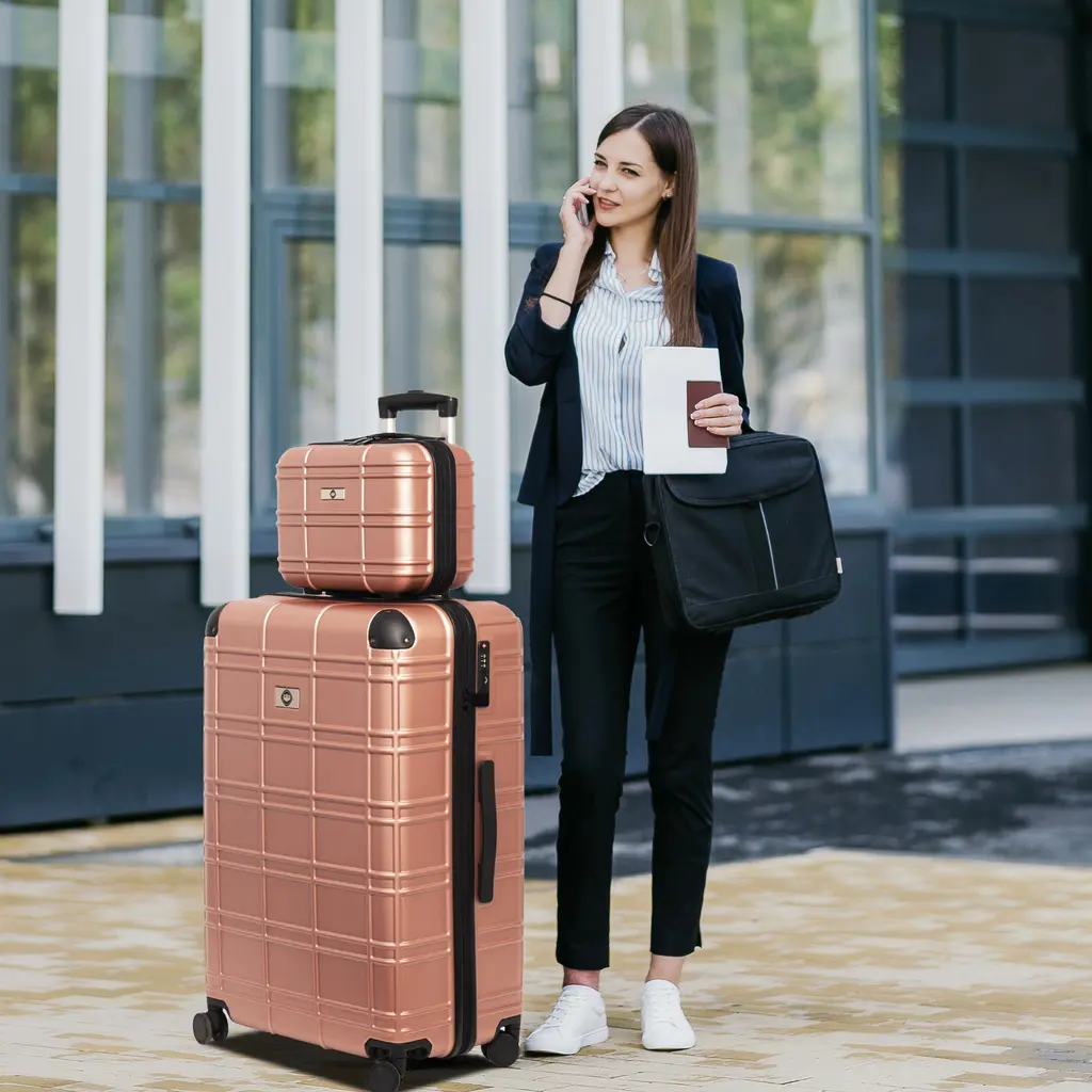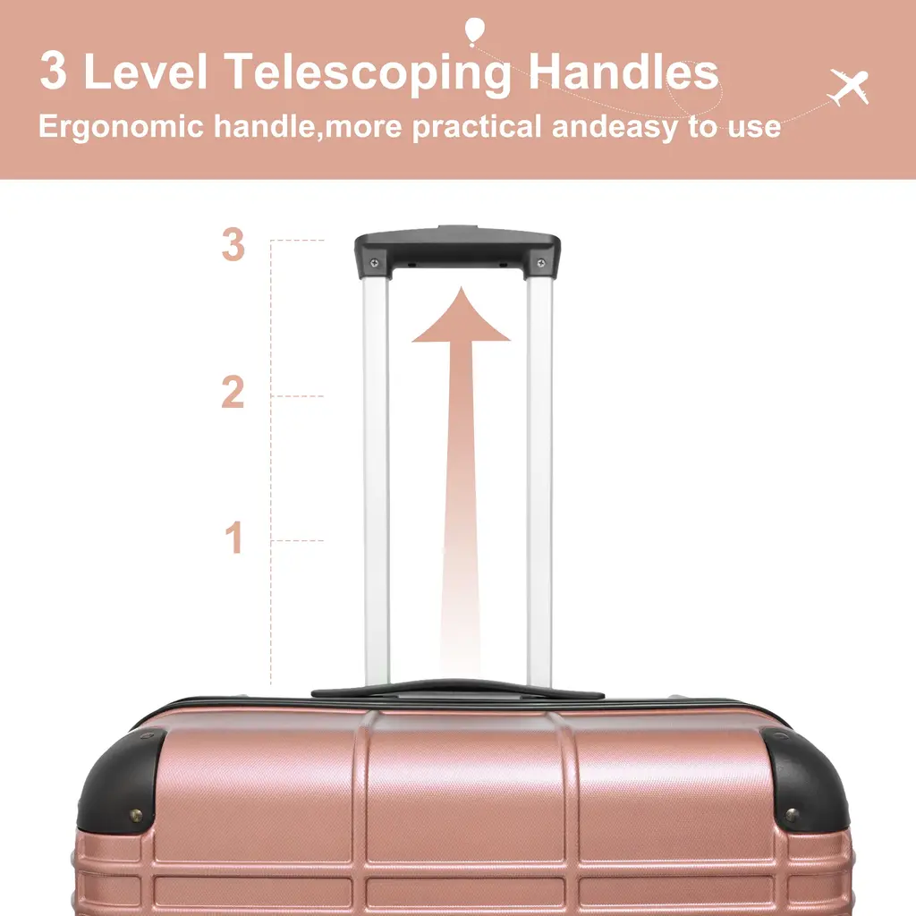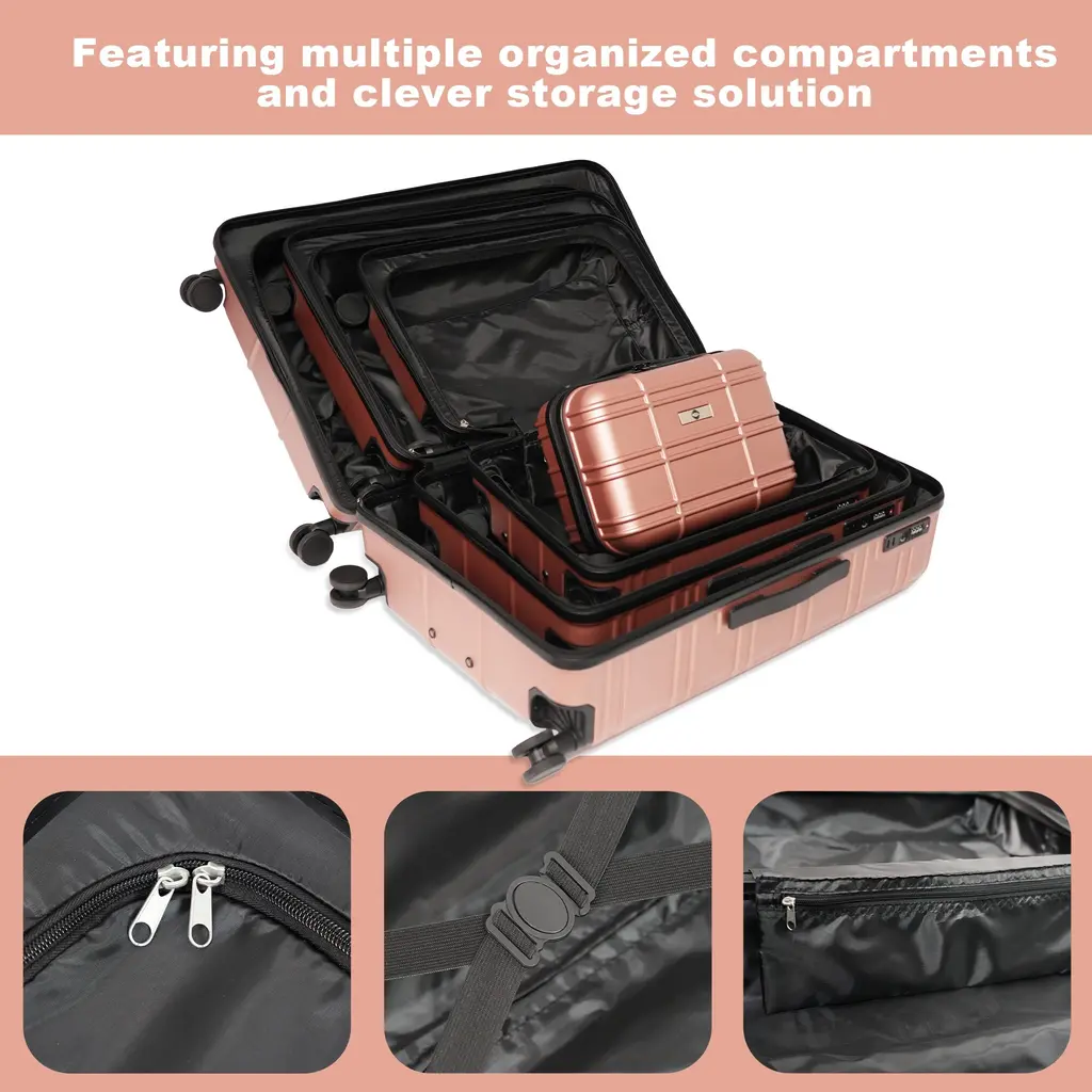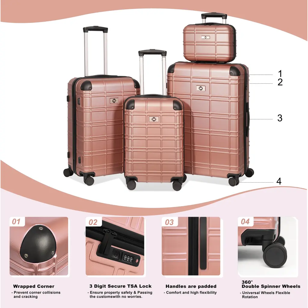 Luggage Set 4 Piece, Abs+pc Hardshell Lightweight Durable Suitcase With Tsa Lock And Spinner Wheels, For Men Women Travel - Rose Gold