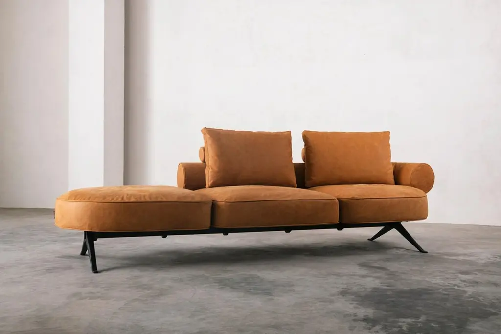 Luizet Canapé by Luca Nichetto Dimensions: W 249 x D 89 x H 82 cmMaterials: Black powder coated aluminium and metal structure, Cast aluminium legsUpholstery: Fabric or leatherAs in a game that frees the imagination and possibilities, Luizet is a modular sofa system that invites to combine together various elements by a distinctive geometry. An arched angular piece, a central square and a circular one, available both as a table and as a pouf, are the foundation for a variety of settings. Supported by a discrete and elegant metal frame, the three modules can be juxtaposed and mixed with the addition of cylindrical and rectangular cushions for the backrest. From a classic three seater sofa to a number of wider and more complex solutions.Italian designer Luca Nichetto, artistic director of La Manufacture, was born in Venice in 1976. He studied at IUAV, the University Institute of Architecture in Venice, from which he graduated in industrial design.