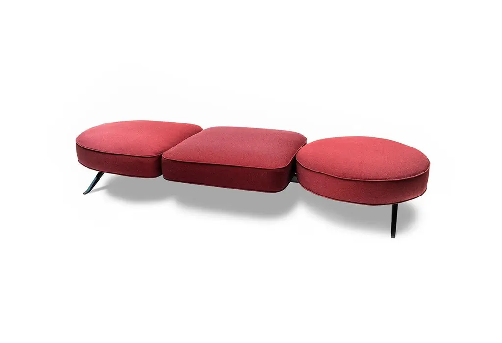 Luizet Canapé by Luca Nichetto Dimensions: W 240 x D 80 x H 42.6 cmMaterials: Upholstery: Fabric or leatherTop: Verde Marinace granite/Emperador silver dark/EmperadorTundra/red marble/terrazzo Botticino marble or Noce Canalettowood.Structure: Black powder coated, aluminum and metal structure, cast aluminum legs.As in a game that frees the imagination and possibilities, Luizet is a modular sofa system that invites to combine together various elements by a distinctive geometry. An arched angular piece, a central square and a circular one, available both as a table and as a pouf, are the foundation for a variety of settings. Supported by a discrete and elegant metal frame, the three modules can be juxtaposed and mixed with the addition of cylindrical and rectangular cushions for the backrest. From a classic three seater sofa to a number of wider and more complex solutions.Italian designer Luca Nichetto, artistic director of La Manufacture, was born in Venice in 1976. He studied at IUAV, the University Institute of Architecture in Venice, from which he graduated in industrial design.