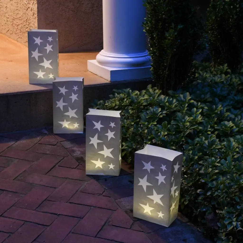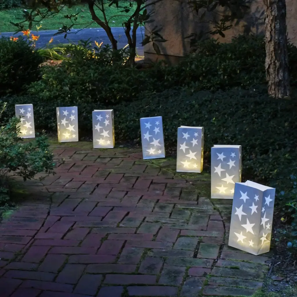 Welcome guests with decorative paper luminaria bags from LumaBase. They brighten up an entryway, driveway, sidewalk, staircase, or patio for a special occasion. Add a LumaBase water-filled candleholder or sand for weight and a battery operated candle. Paper luminarias add a decorative flair while lighting the way for guests. Whether you are lighting your walkway for the holidays or illuminating an entire community, luminary bags bring warmth and light to any occasion. Not weather-resistant or flame-resistant.