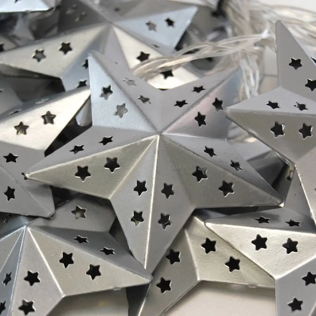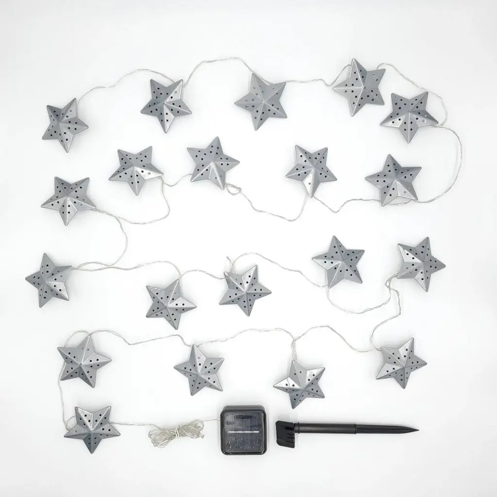 Lumabase Solar-powered String Lights With 20 Silver Metal Stars