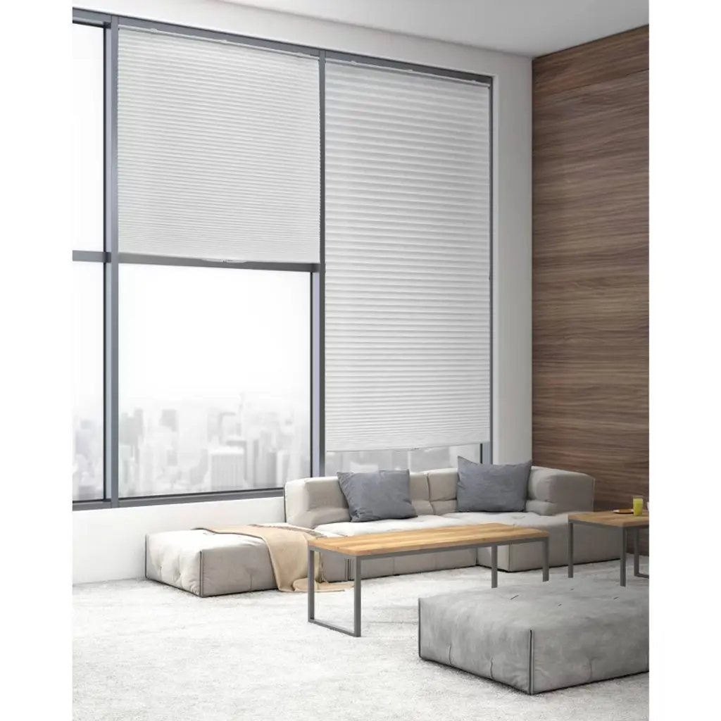 Lumi Home Furnishings Cordless Room Darkening Cellular Shades and Blinds are available in a variety of sizes. The honeycomb fabric construction is from beautifully textured non-woven polyester fabrics. Using only the highest quality of fabrics laminated by PET film that blocks most light entering the room, providing optimum personal privacy. The innovative eco-saving cellular fabric design offers good inside insulation making these the most environmentally friendly and energy savings window coverings on the market in support of our ecosystem. The push-button Cordless Operating System is one of the most unique features; located inside the bottom rail with a durable spring tension device especially designed for simple, safe and easy cordless operation. To operate simply press the button located on the bottom rail and gently pull down or push up to desired length. They are easy to resize and easy to install. If resizing is needed, simply cut down the shade (equally from both sides) to fit any required window width using a heavy duty utility knife (not included) while using the resizing cutting guide tool included. 100% Cordless, perfectly safe to use with children and pets.