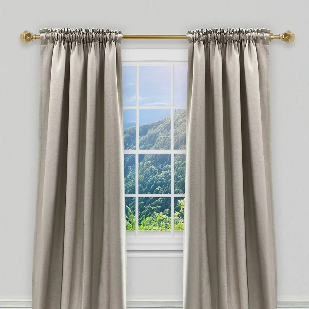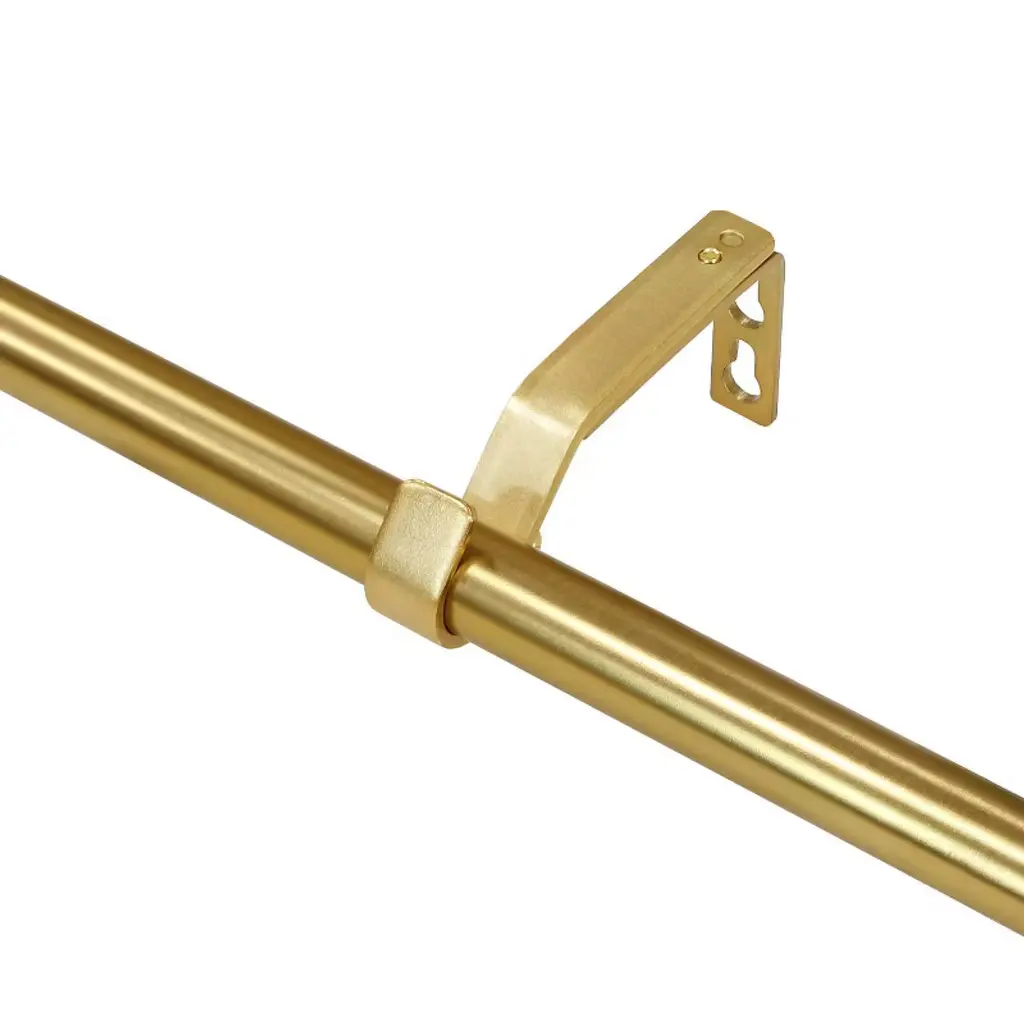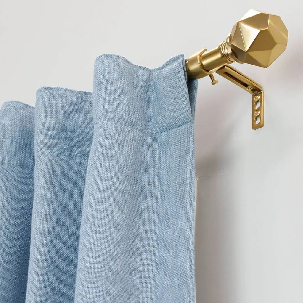 Lumi Home Furnishings all-inclusive Champagne Drapery Rod Kit with Geometric finials beautifully adorn your classic window treatments. Featuring a versatile Champagne finish that complements a variety of timeless and traditional decor styles. This complete curtain rod kit includes a telescoping pole, two 3/4" finials, brackets and mounting hardware for a quick and easy installation. Available sizes in: 36"-66", 66"-120"