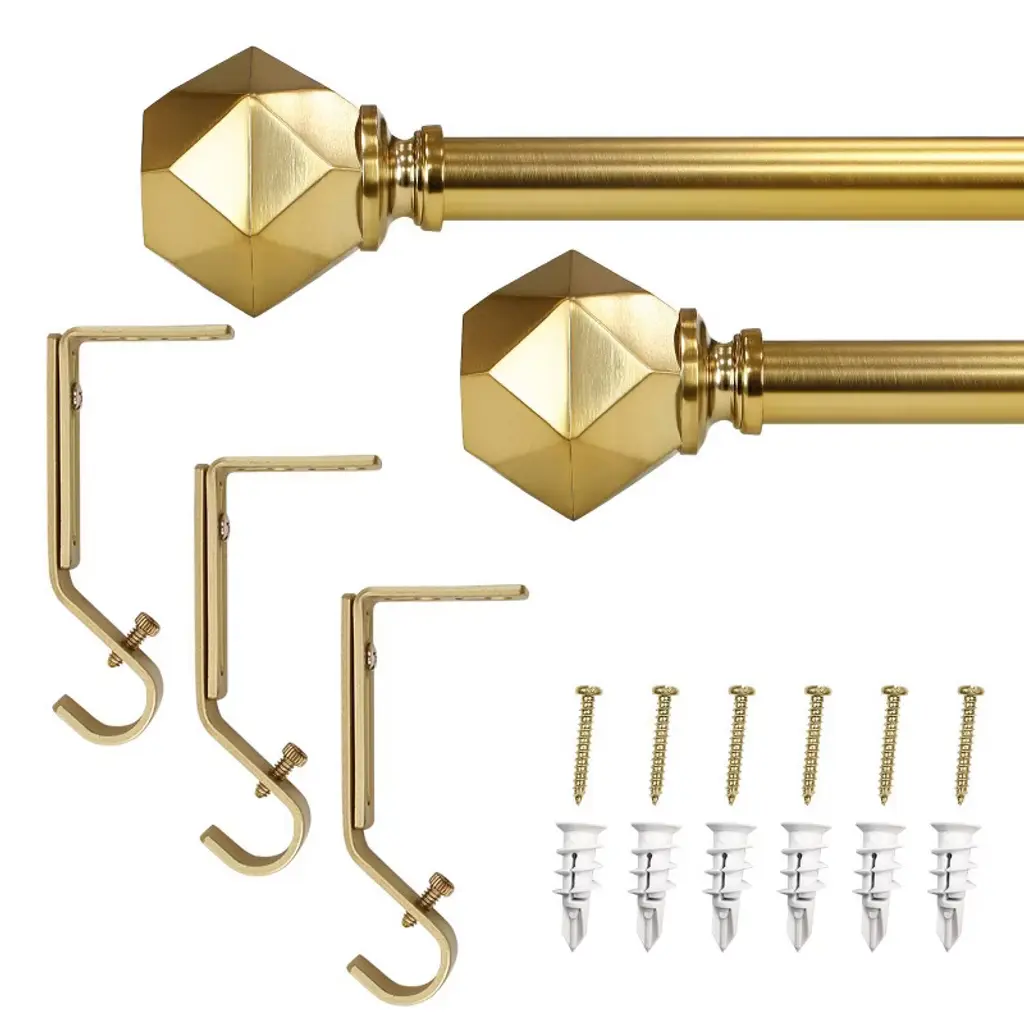Lumi Home Furnishings all-inclusive Champagne Drapery Rod Kit with Geometric finials beautifully adorn your classic window treatments. Featuring a versatile Champagne finish that complements a variety of timeless and traditional decor styles. This complete curtain rod kit includes a telescoping pole, two 3/4" finials, brackets and mounting hardware for a quick and easy installation. Available sizes in: 36"-66", 66"-120"
