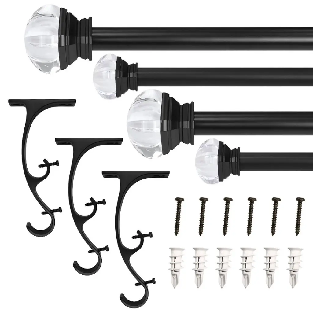 Lumi Home Furnishings all-inclusive Black Drapery Rod Kit with Crystal Square finials beautifully adorn your classic window treatments. Featuring a versatile Black finish that complements a variety of timeless and traditional decor styles. This complete curtain rod kit includes two telescoping rods, four finials, installation brackets and mounting hardware for a quick and easy installation. Available sizes in: 36"-72", 72"-144"