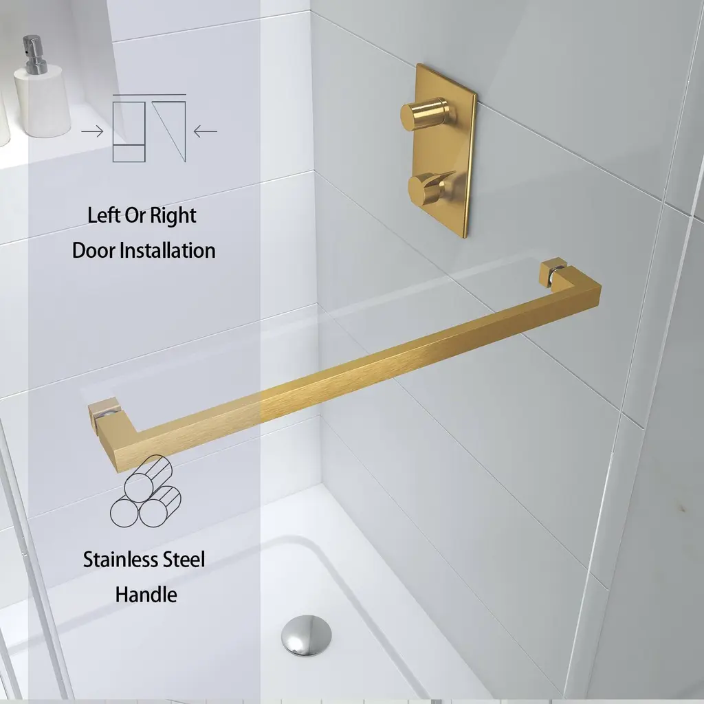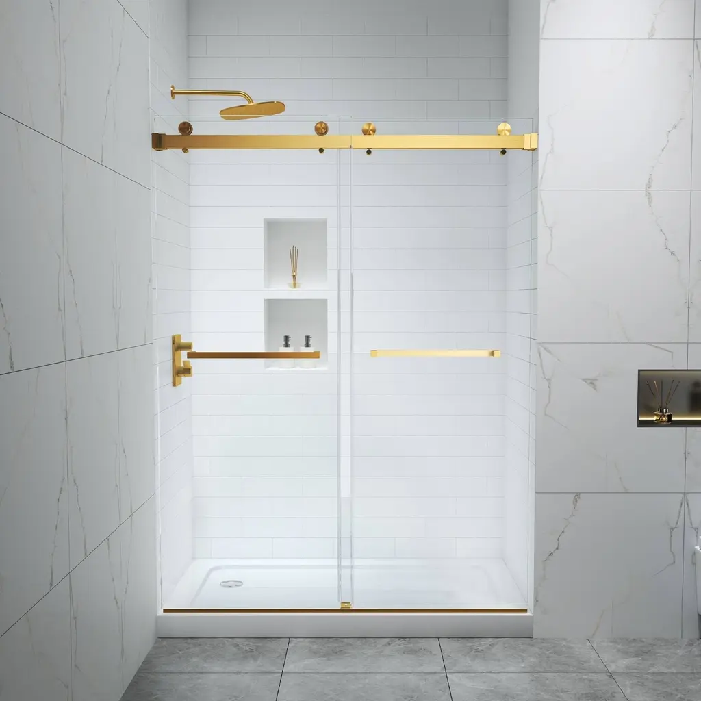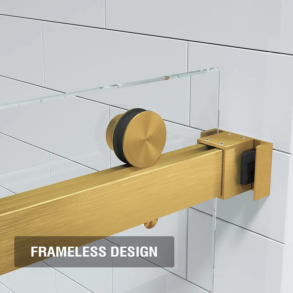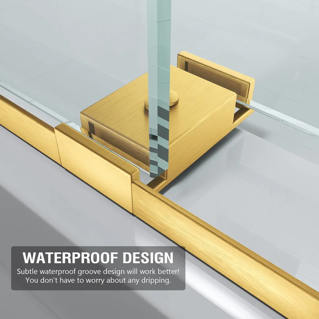 Lumilace 56-61 In W X 76 In H Double Sliding Frameless Shower Door With Smooth Sliding And 3/8 In. Glass - Brushed Gold