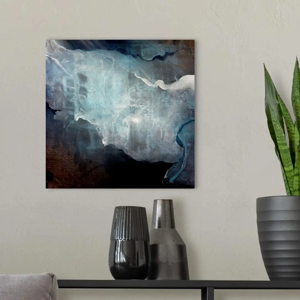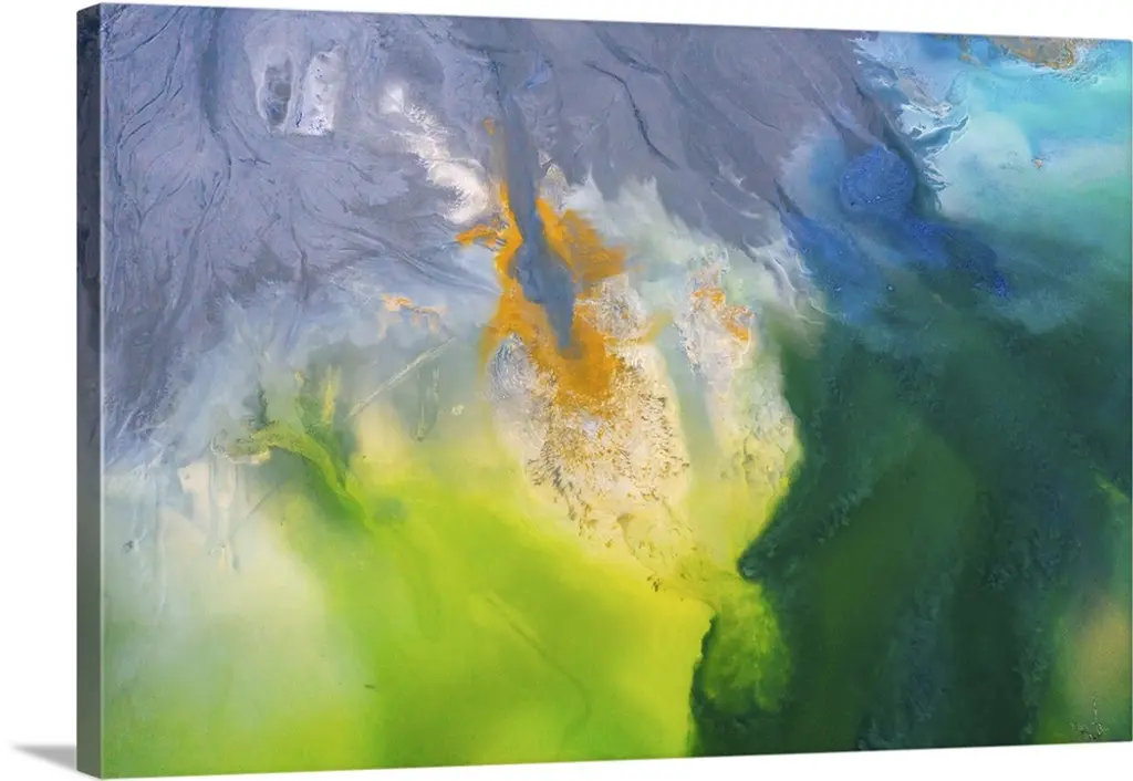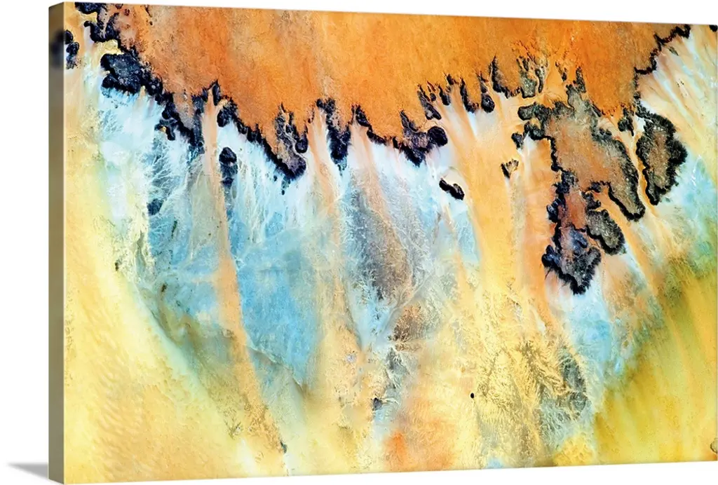 Abstract art of bright colors resembling smoke wafting on a dark background.