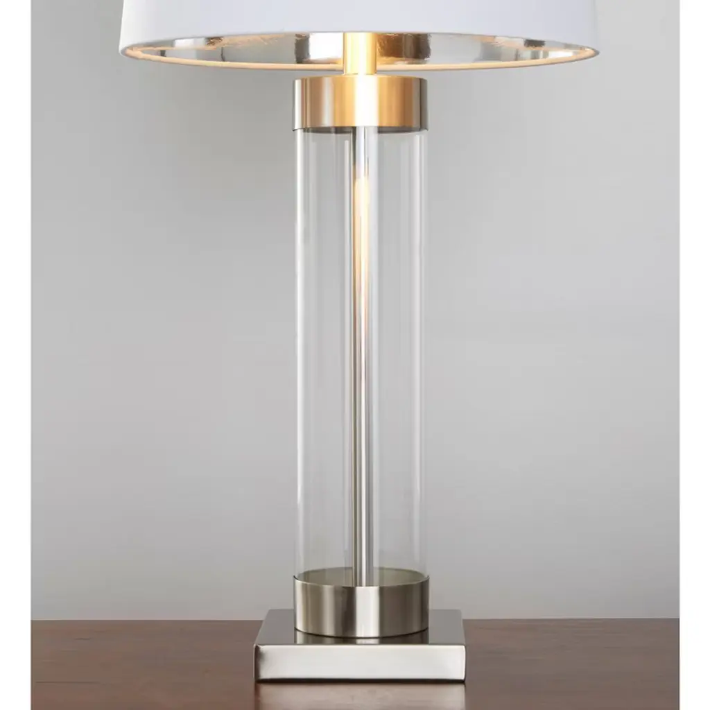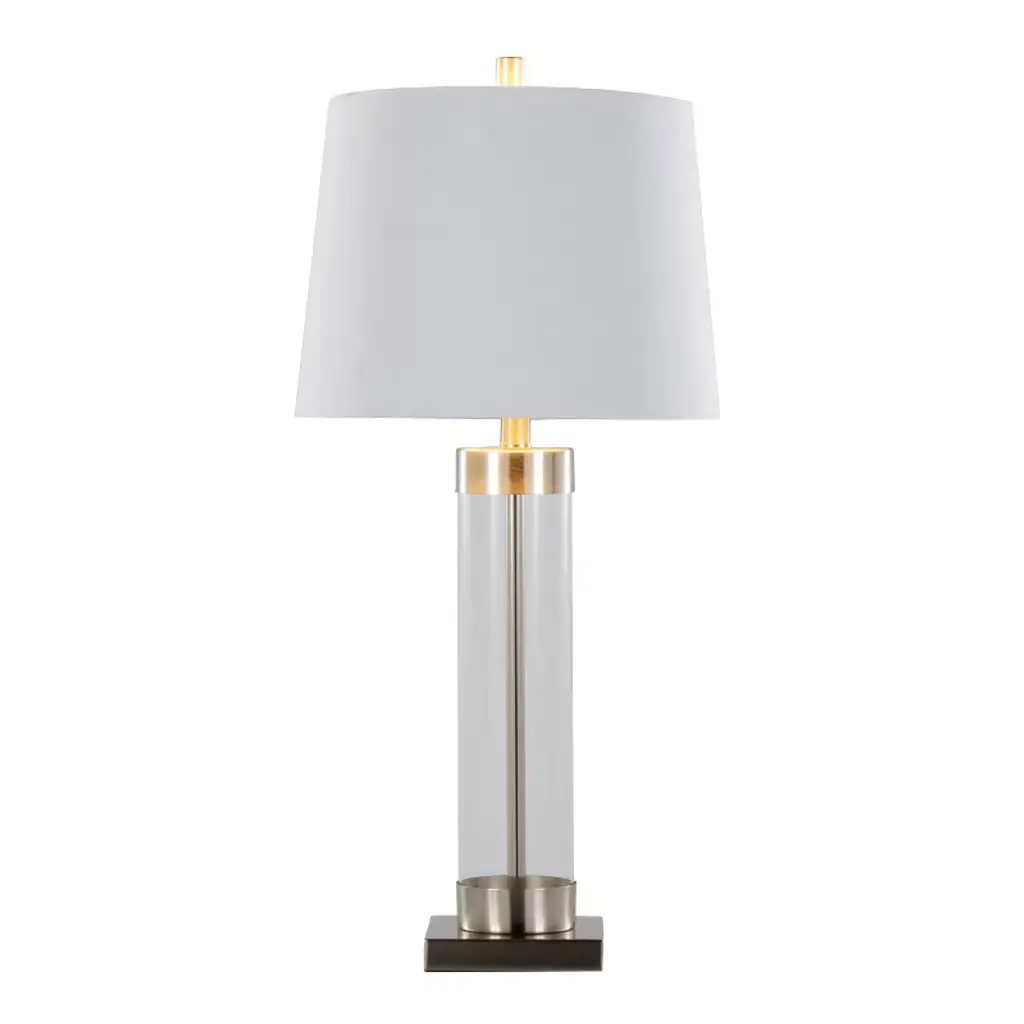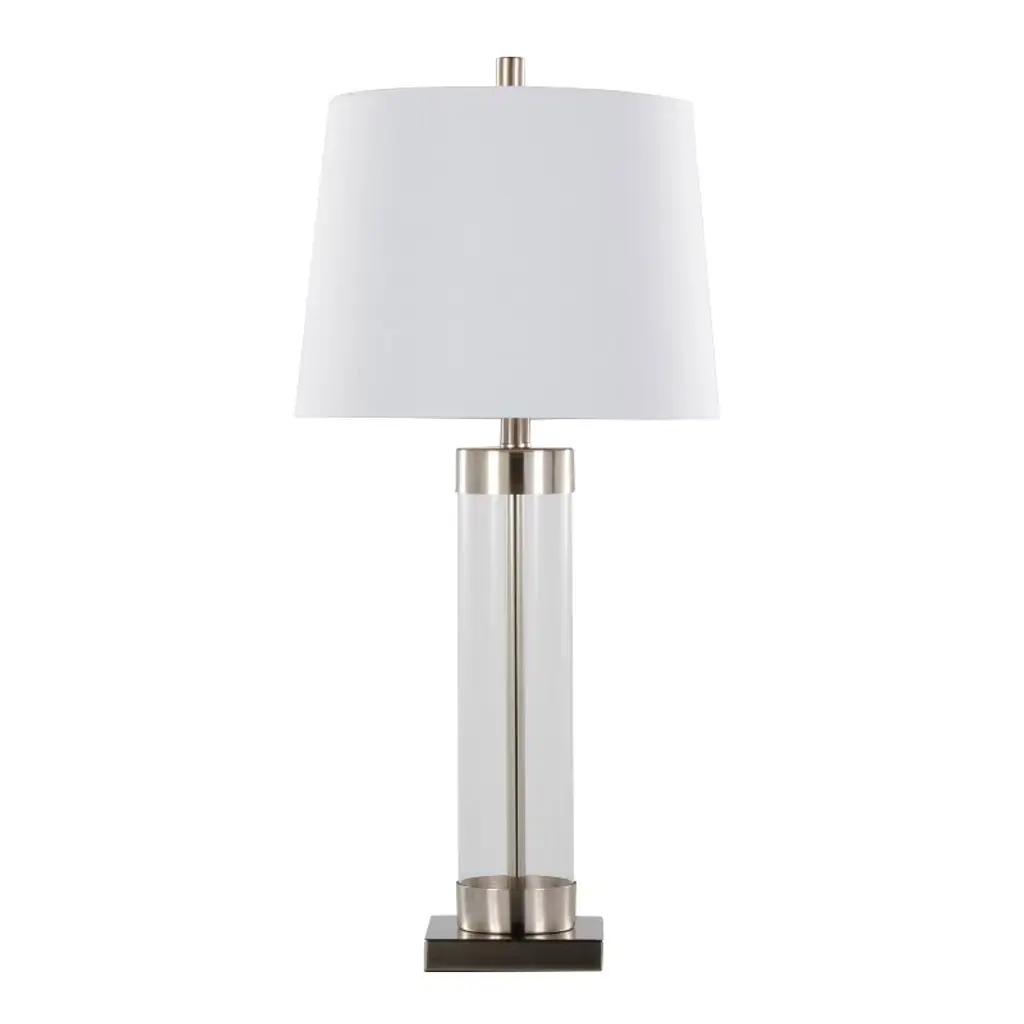 Elevate your decor with the Glacier Table Lamp from Grandview Gallery by LumiSource, a stunning fusion of clear glass and brushed nickel. This modern masterpiece casts a warm, inviting glow, perfect for illuminating your living room, bedroom, or office. With its sleek, minimalist design, the Glacier Table Lamp seamlessly blends form and function, making it a must-have addition to any contemporary space.