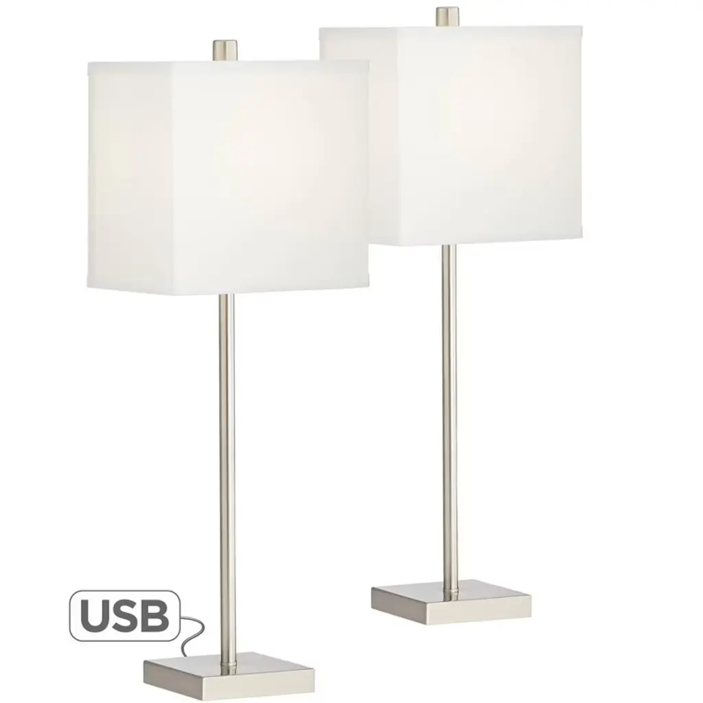 Lumisource Set Of 2 Glacier 30" Contemporary Glass Table Lamp In Clear Glass And Brushed Nickel With White Linen Shade From Grandview Gallery