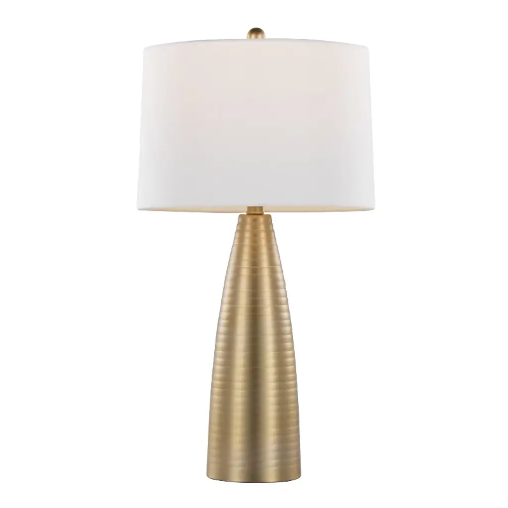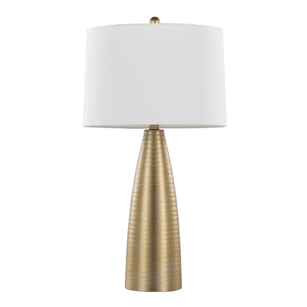 Give your living room or hallway some contemporary glam style with the Maya Table Lamp from Grandview Gallery by LumiSource. These beautiful lamps have a rounded bullet shape with a distinctive ribbed texture that adds a luxe appearance to your space. Whether resting on your nightstands, set on a side table in the den, or tucked into your favorite reading nook, this lamp is a chic addition to any aesthetic.