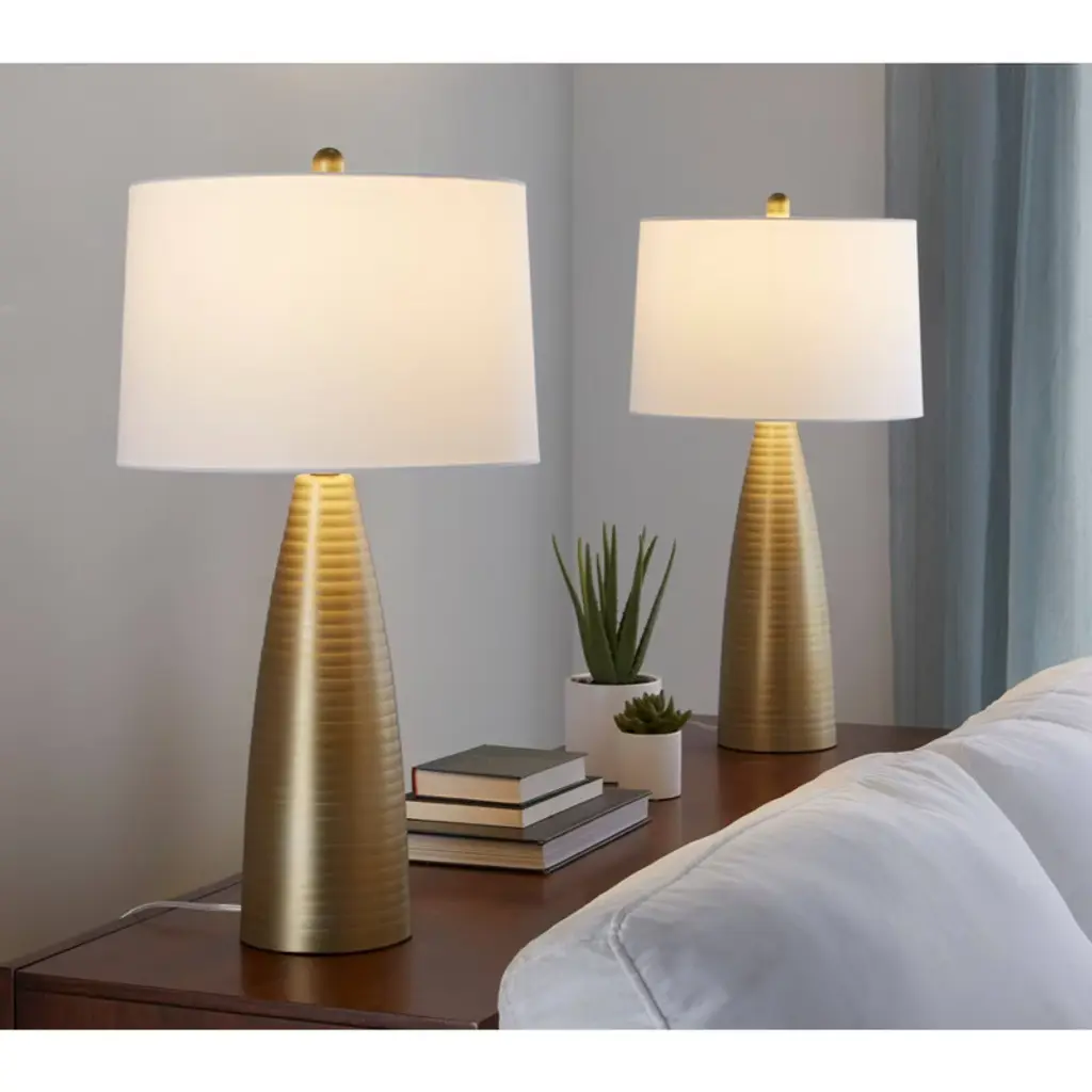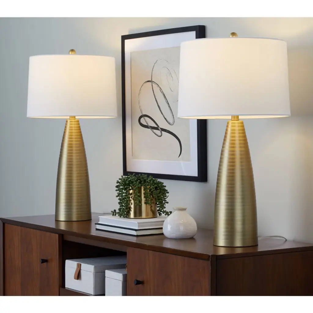 Lumisource Set Of 2 Maya 27" Contemporary Metal Table Lamp In Gold Metal With White Linen Shade From Grandview Gallery