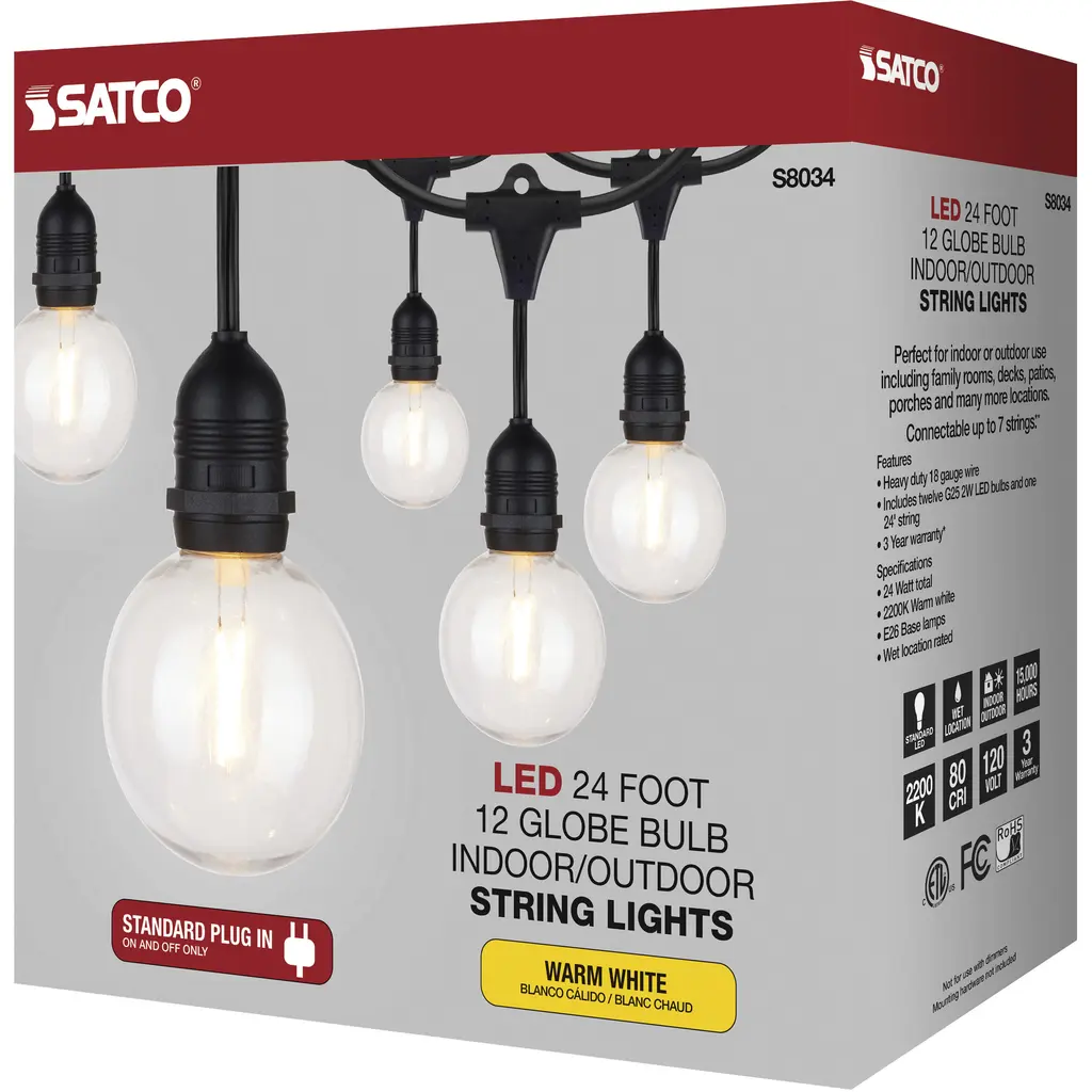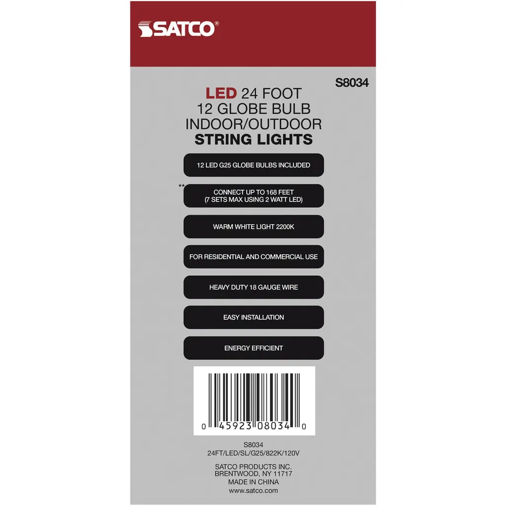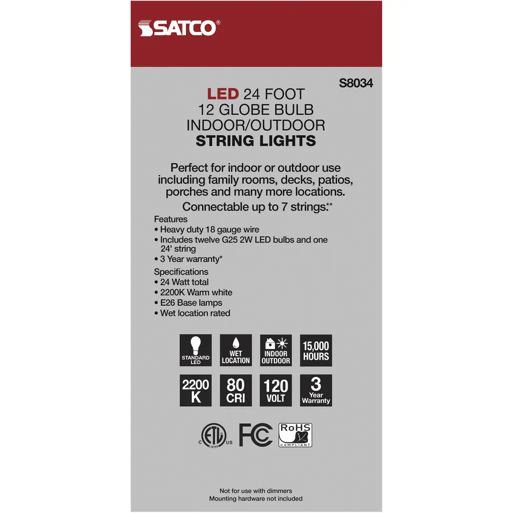 24Ft; LED String Light; Includes 12-G25 bulbs; 2200K; 120 Volts