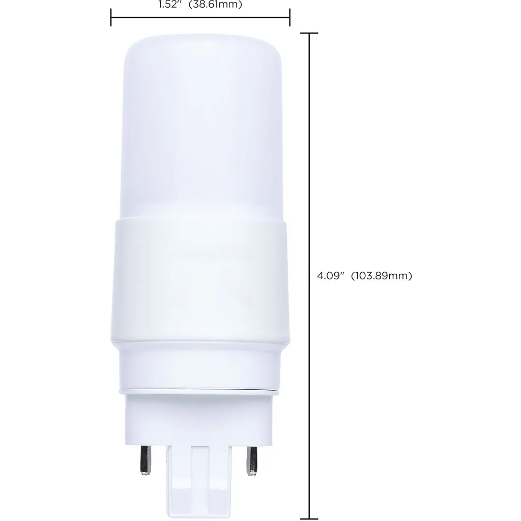 SATCO NUVO's S21424 CFL replacement lamp delivers reliable, energy-efficient performance in a compact and versatile PL shape. This 5-watt model is designed to replace 13-watt CFLs, providing a 5000K daylight light with a GX23 base. A+B dual mode ballast compatibility ensures flexibility for both plug-and-play and ballast bypass installations. Constructed with durable aluminum and plastic and finished with a frosted lens, it provides even, glare-free illumination in any universal operating position. Damp location rated with a 50,000-hour lifespan and backed by a 5-year warranty, this non-dimmable lamp is built for lasting performance.
