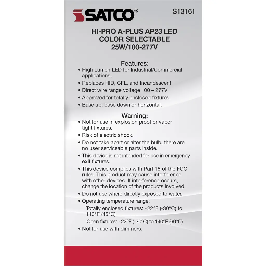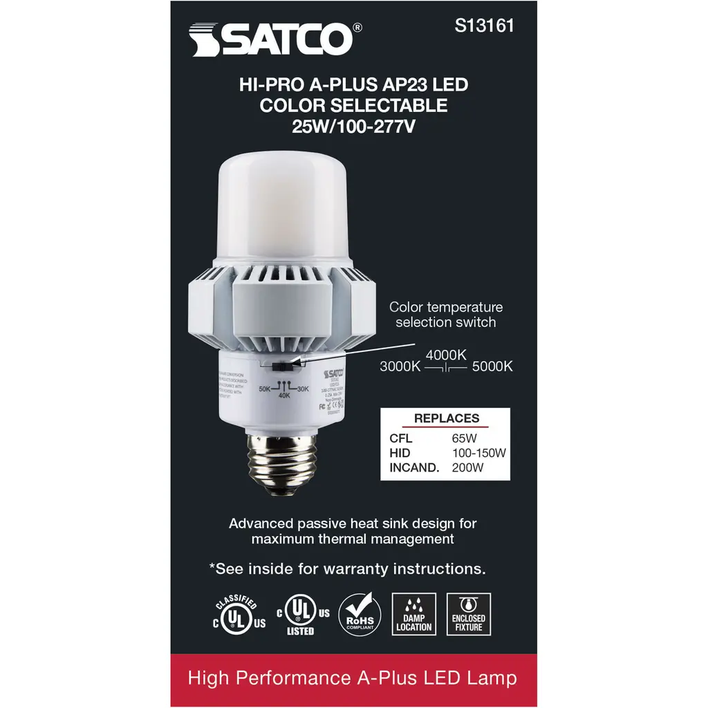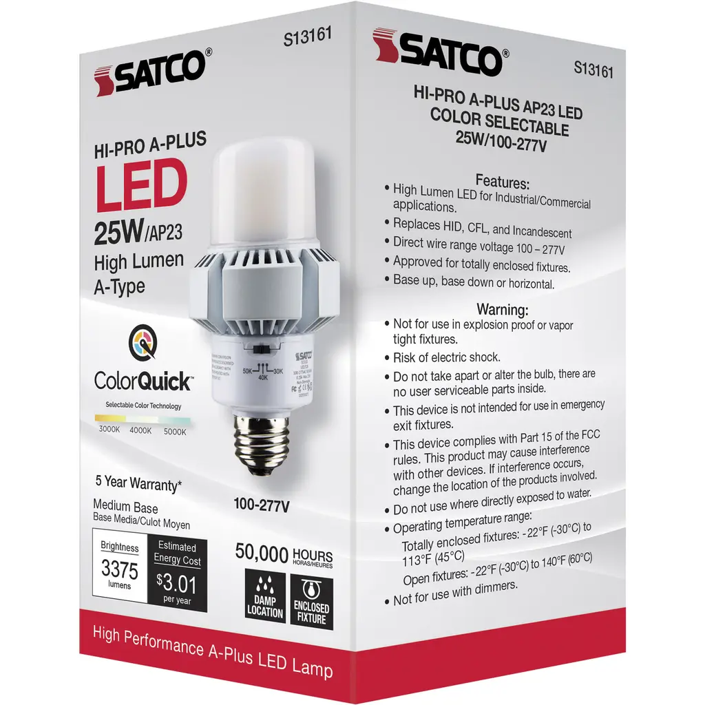 25-Watt - A-Plus 23 - LED - CCT Selectable 3K/4K/5K - Medium Base - 100-277 Volt - ColorQuick Technology