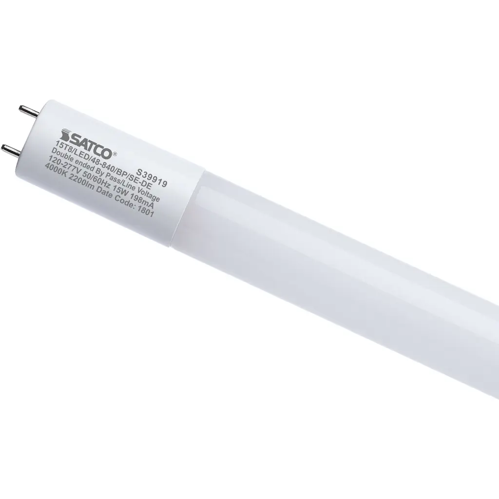 SATCO's S39918 LED Type B ballast bypass lamps are designed to replace T8 or T12 medium bi-pin fluorescent lamps. They are engineered for single or double-ended wiring options and will not light unless ballast is bypassed. Commercial venues, schools, hospitality, health care - any large scale lighting application - will benefit from immediate energy savings and less maintenance.
