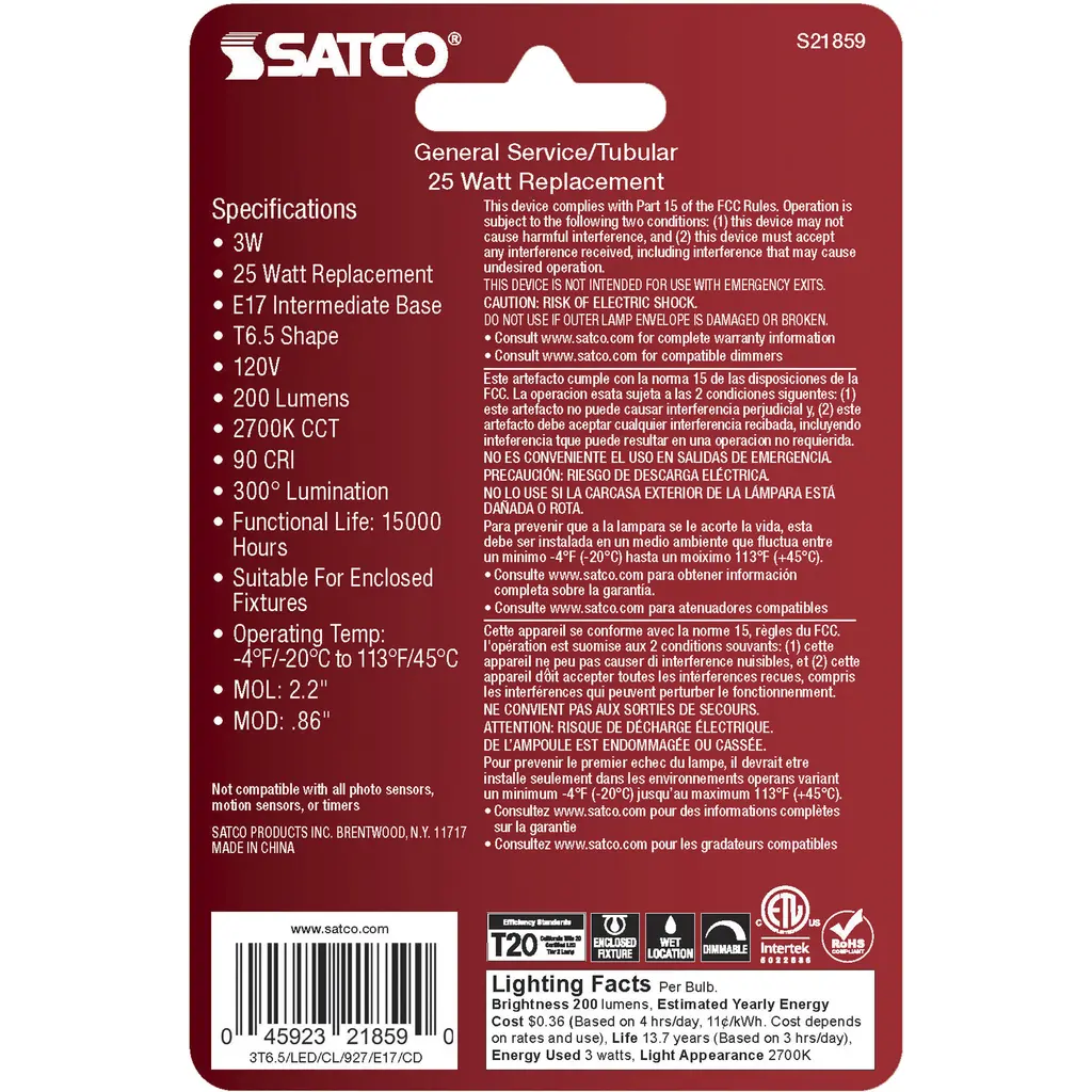 3-Watt T6.5 LED - Clear - Intermediate Base - 200 Lumens - 2700K