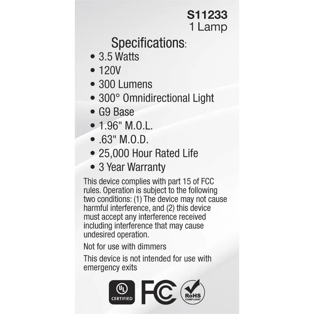 3.5 Watt JCD LED Lamp - Frost - 4000K - G9 Base - 120 Volt