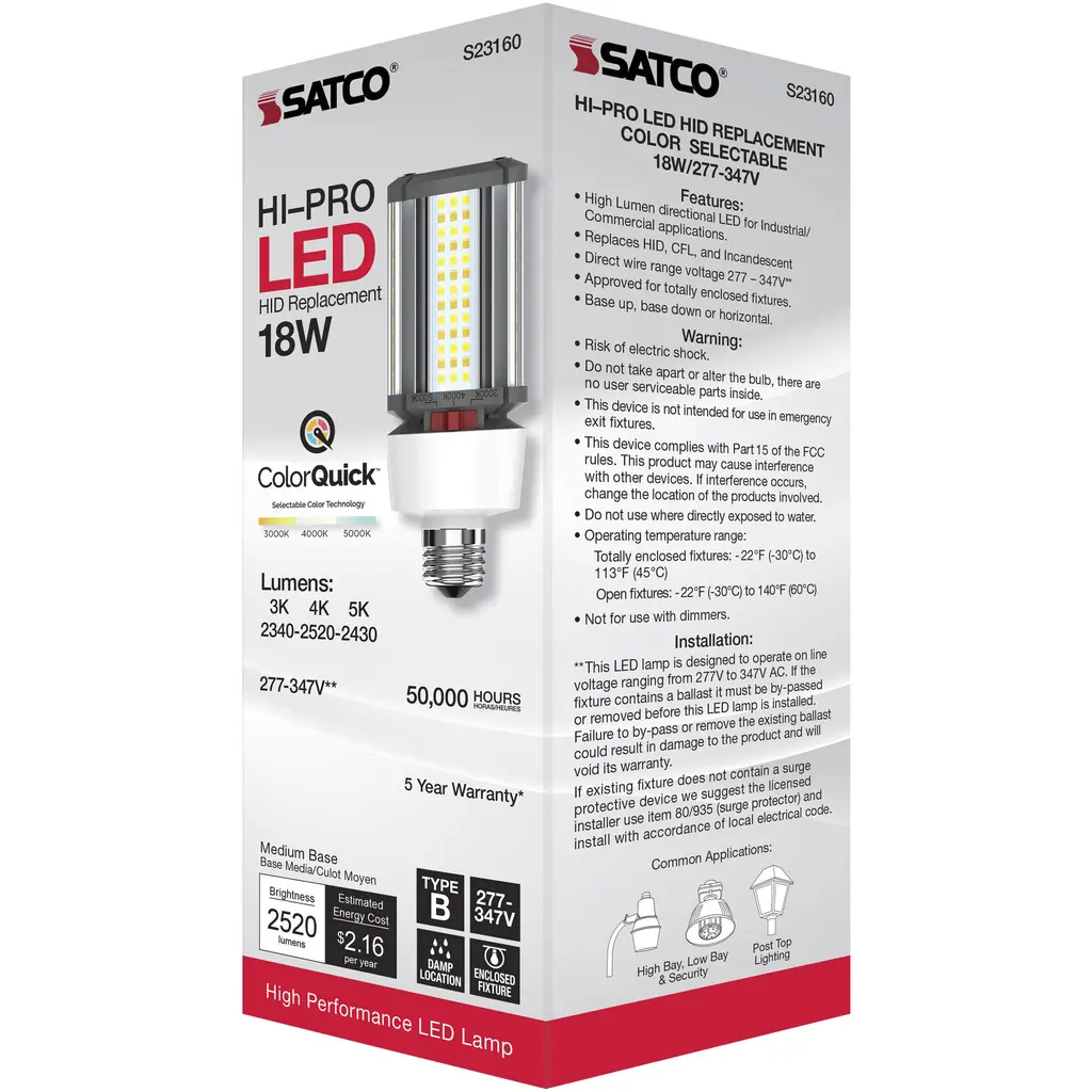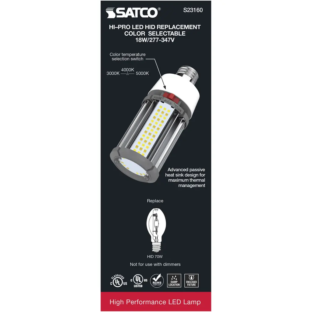 18 Watt LED HID Replacement - CCT Selectable - Type B - Ballast Bypass - Medium Base - 277-347 Volt - ColorQuick Technology