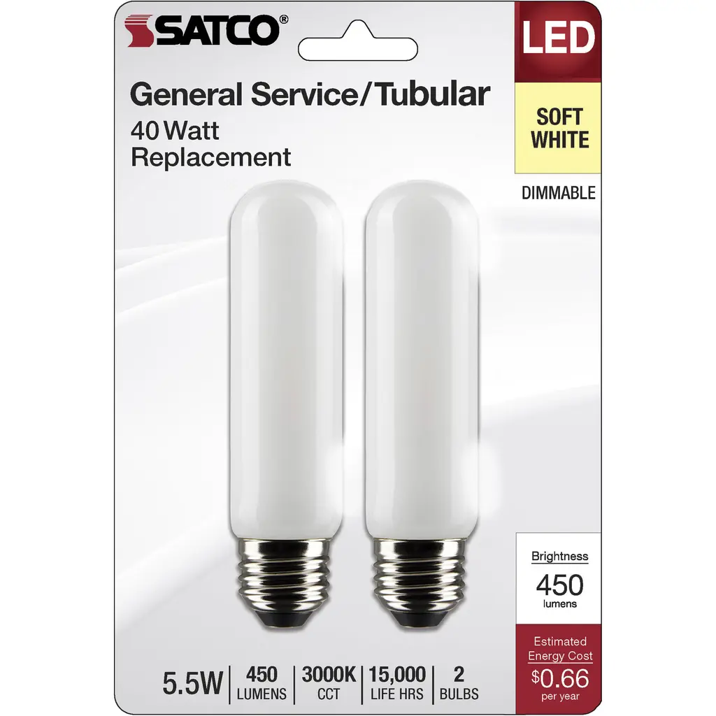 5.5-Watt T10 LED - Frosted - Medium Base - 3000K - 450 Lumens - 120 Volts - 2-Pack