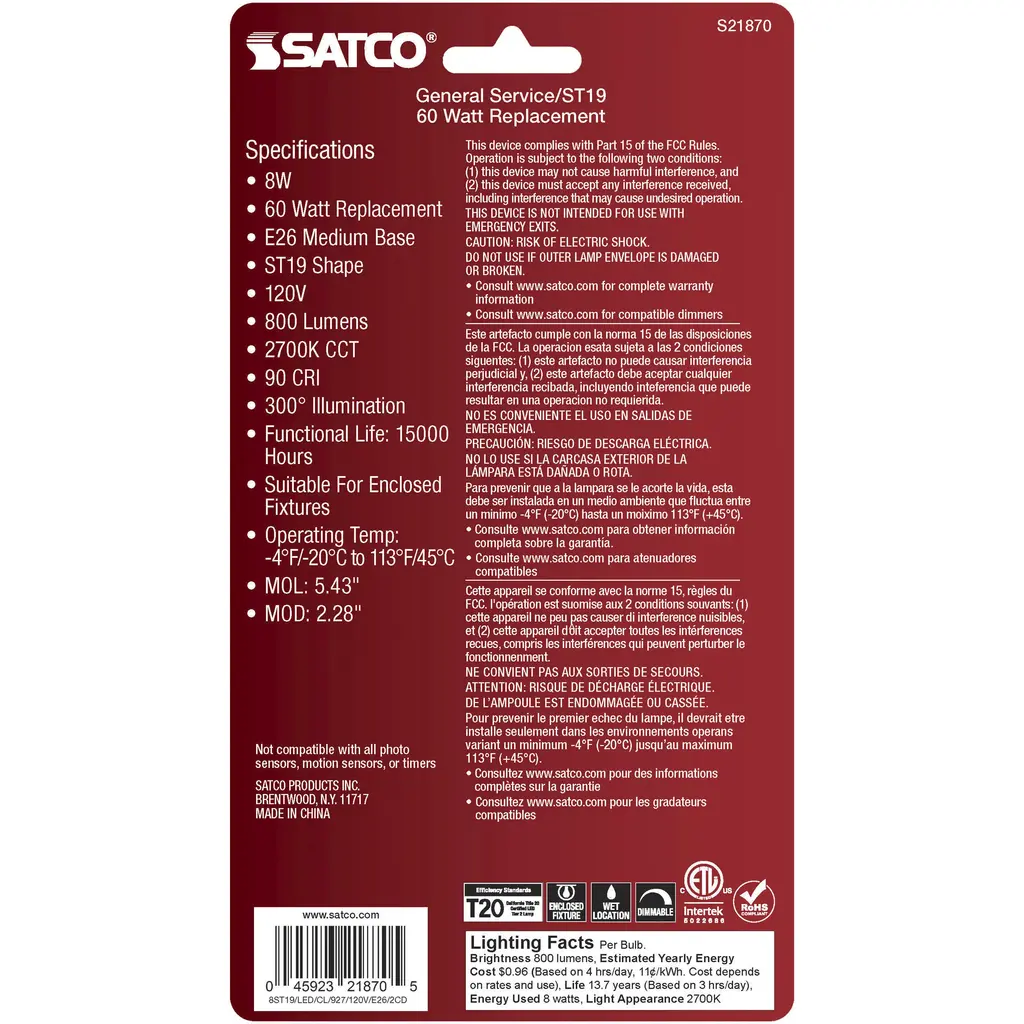 8-Watt ST19 LED - Clear: Medium Base - 2700K - 800 Lumens - 2-Pack