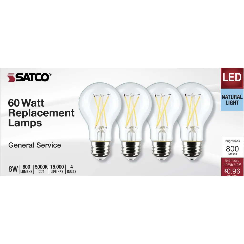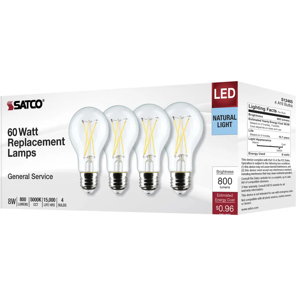 8 Watt A19 LED - Clear - 5000K - Medium Base - 120 Volt - 4-Pack
