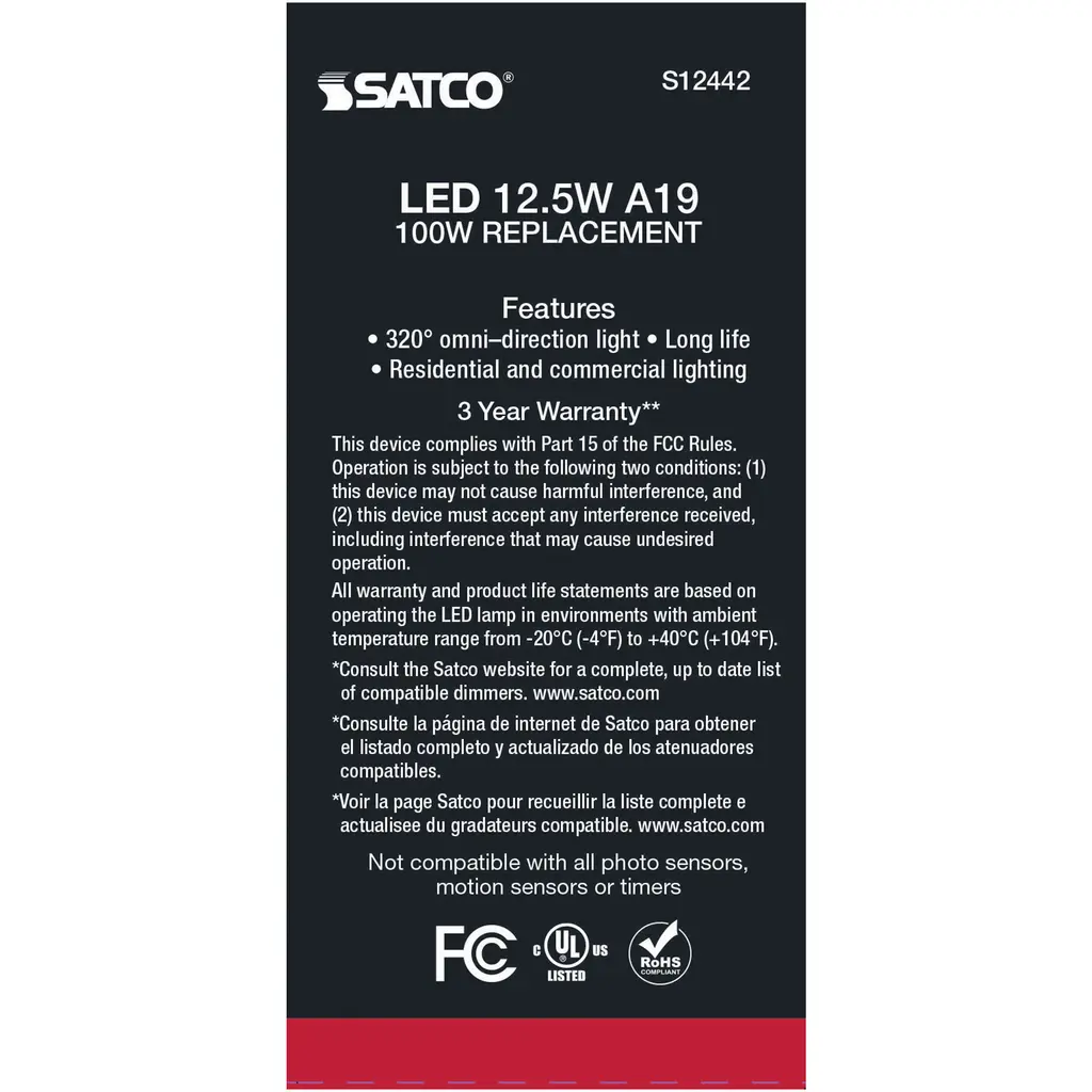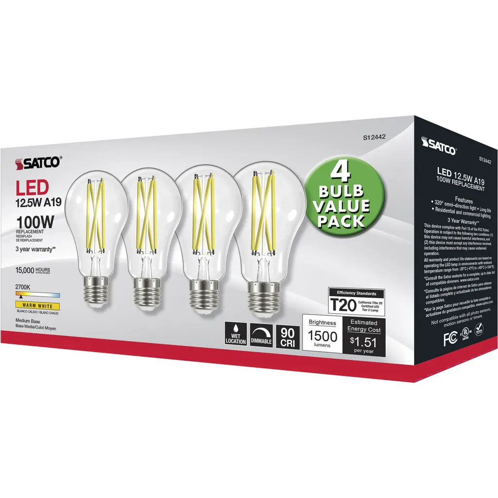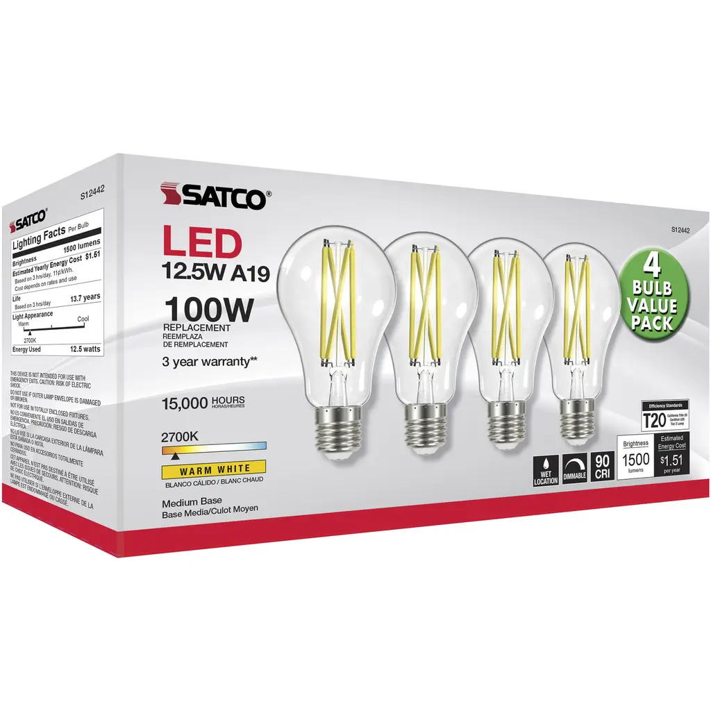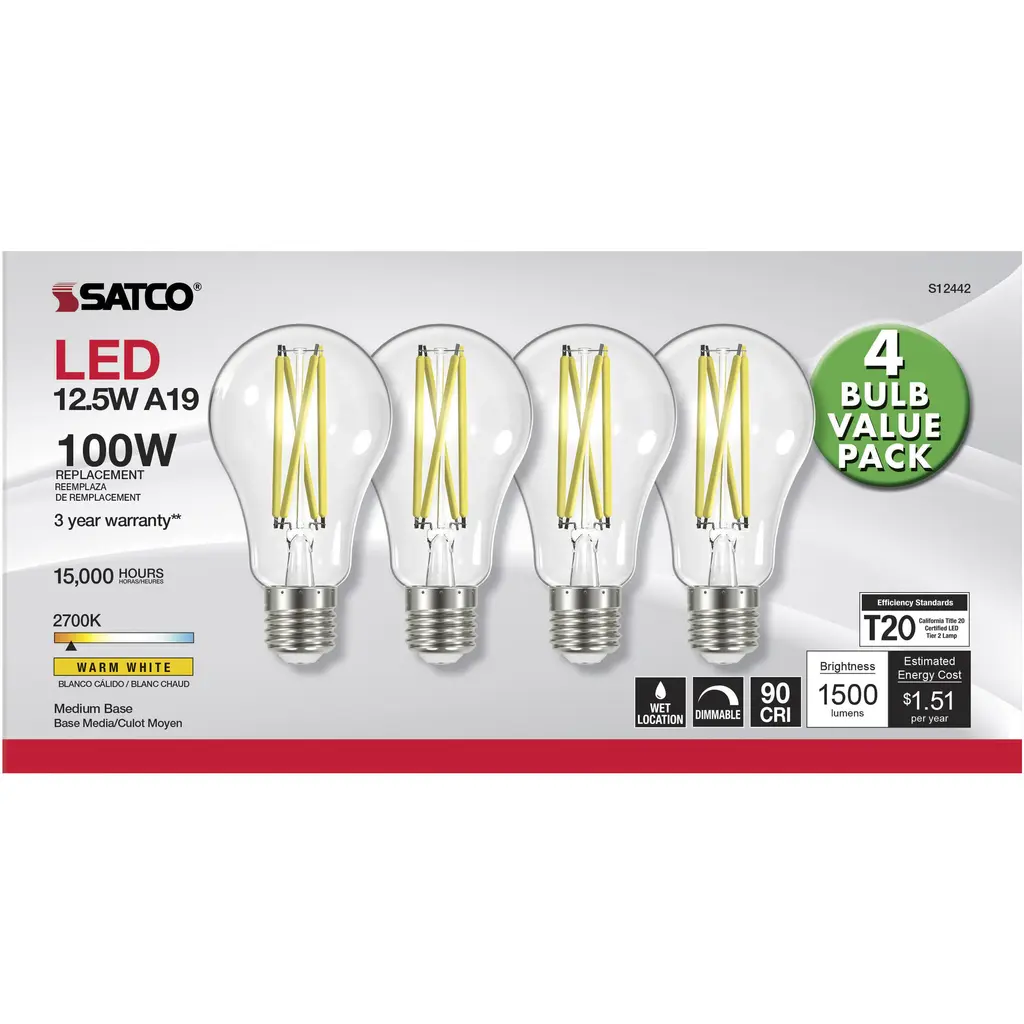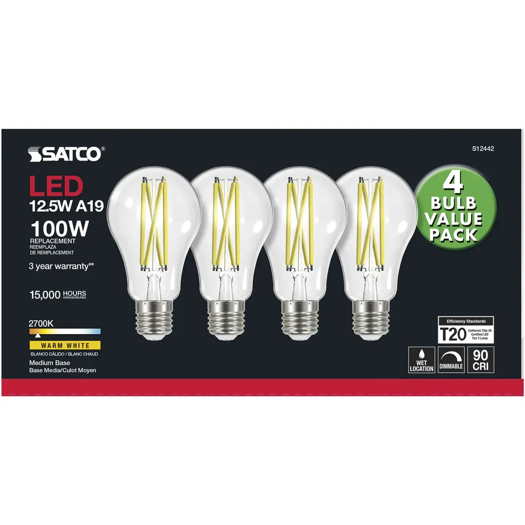 12.5 Watt A19 LED - 100 Watt Replacement - Clear - Medium Base - 2700K - 120 Volt - 4-Pack