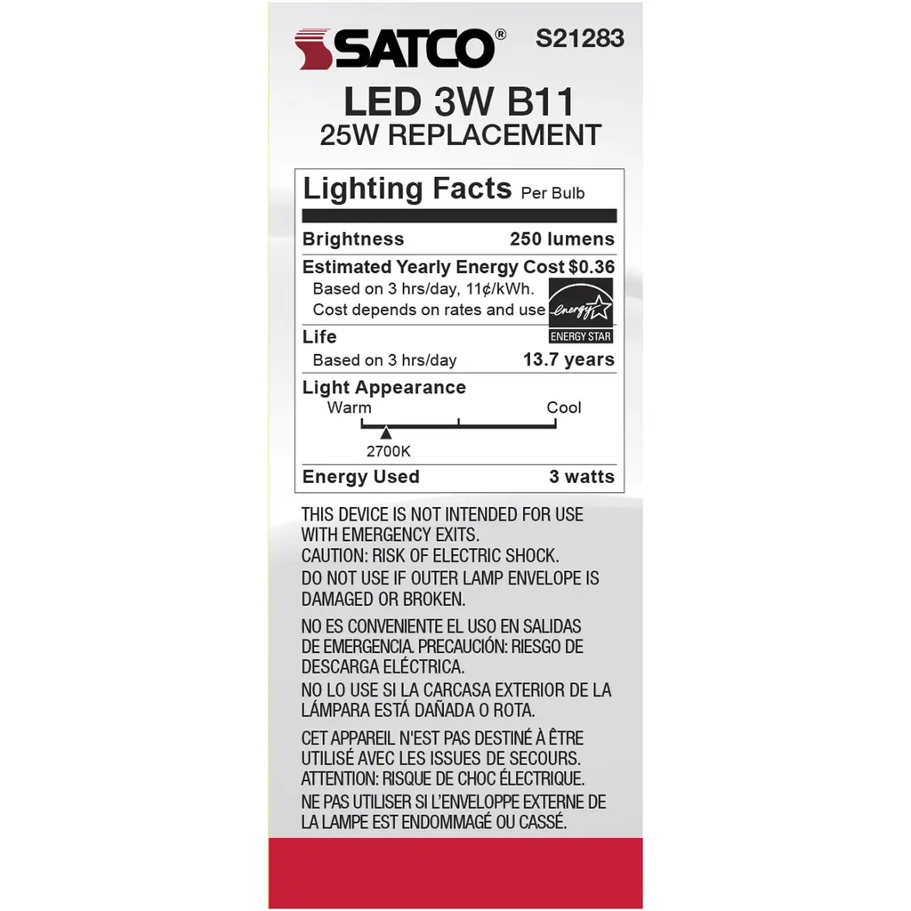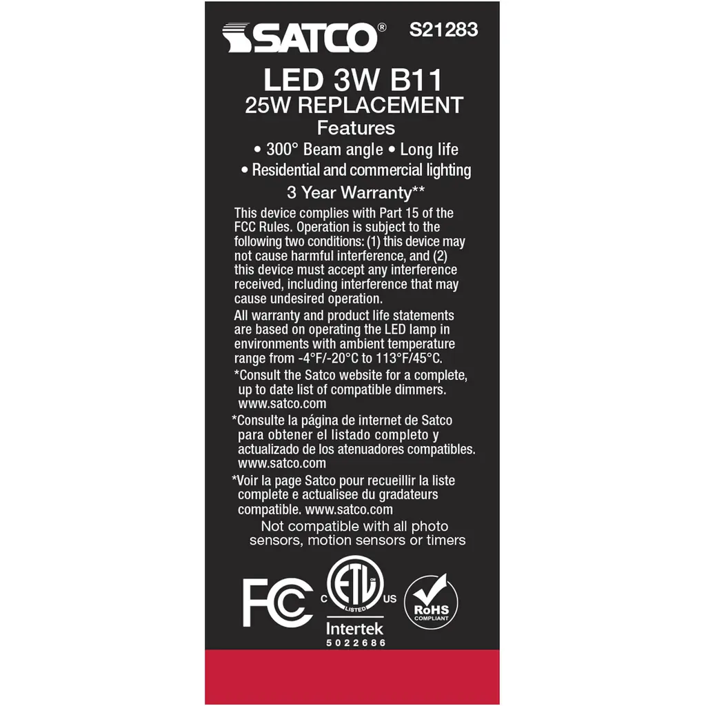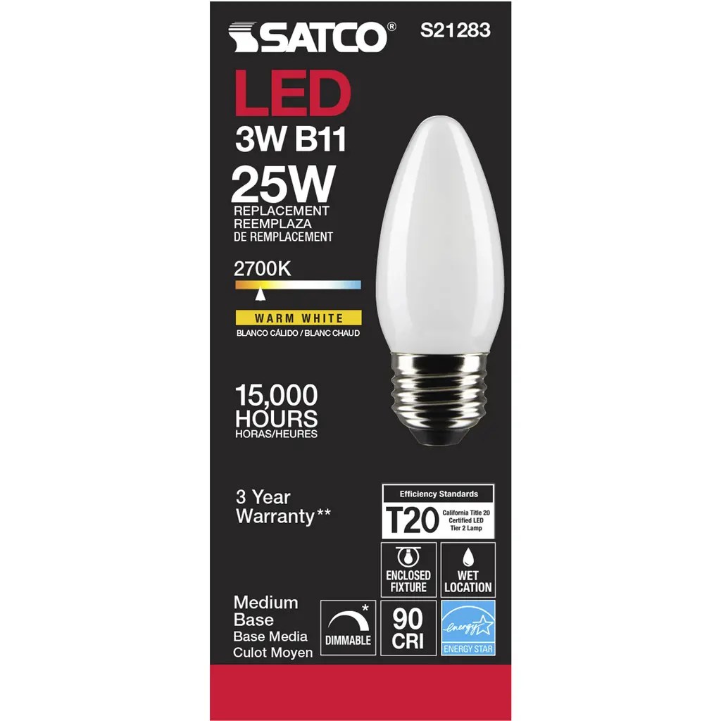 3 Watt B11 LED Lamp - Frost - Medium Base - 90 CRI - 2700K - 120 Volts