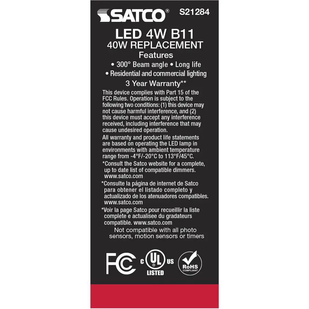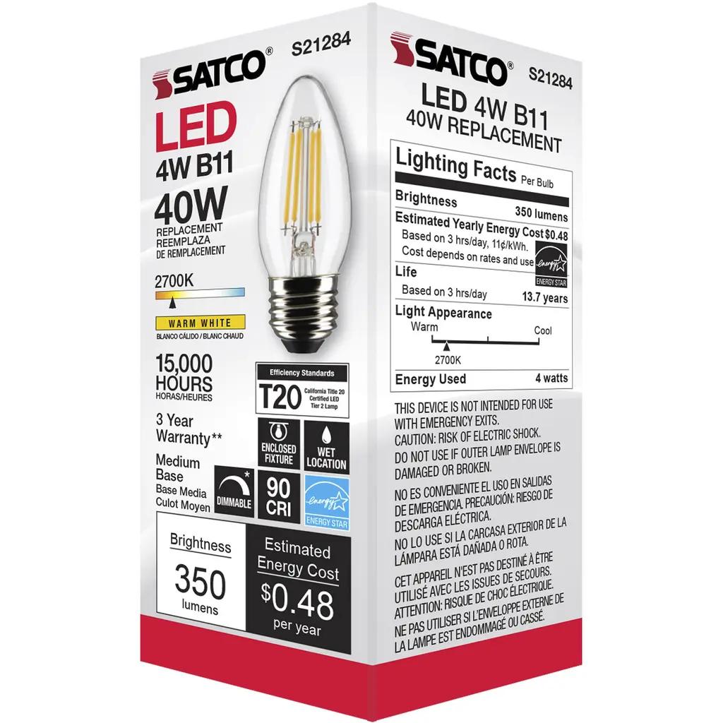 4 Watt B11 LED Lamp - Clear - Medium Base - 90 CRI - 2700K - 120 Volts