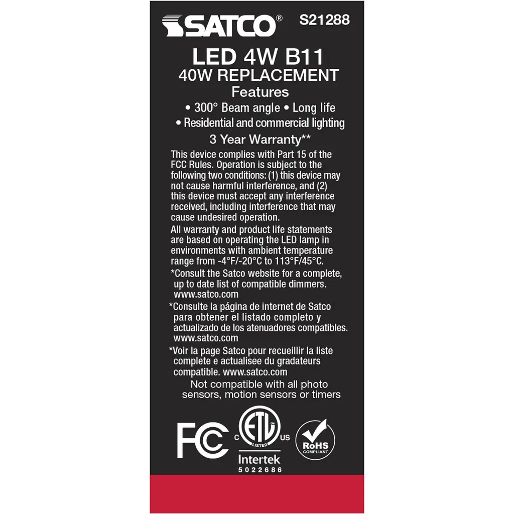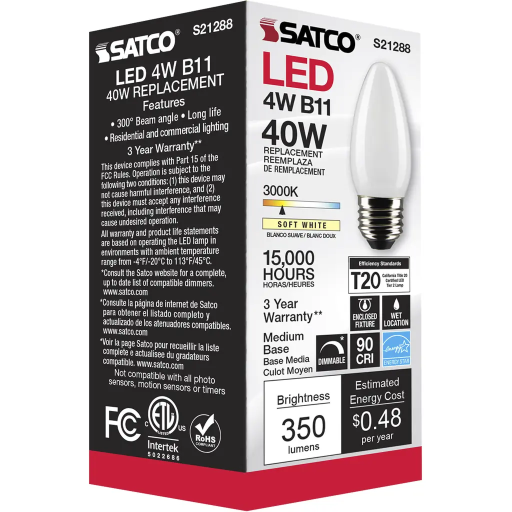 4 Watt B11 LED Lamp - Frost - Medium Base - 90 CRI - 3000K - 120 Volts