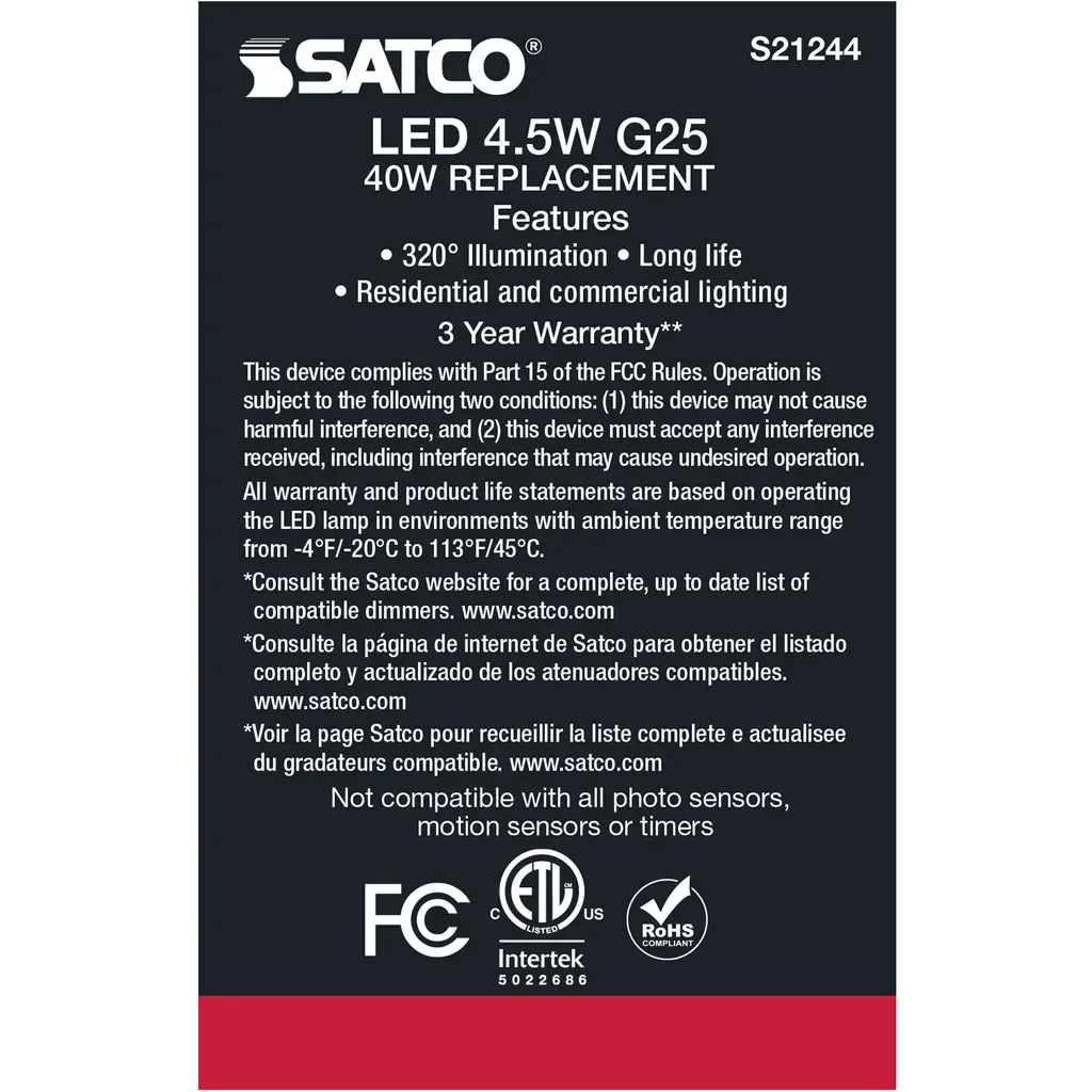4.5 Watt G25 LED Lamp - White - Medium Base - 90 CRI - 2700K - 120 Volts - 2-Pack